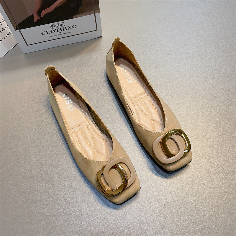 프랑스 스타일 펌프 신발 여성 한국 스타일 봄과 여름 새로운 스타일 금속 버클 부드러운 광장 발가락 부드러운 바닥 신발