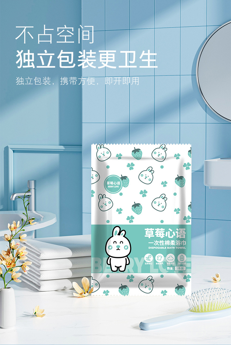 딸기 심장 언어 휴대용 일회용 목욕 타월 여행 별도로 포장 된 순수한 면 두꺼운 호텔 침대스토어 가기
