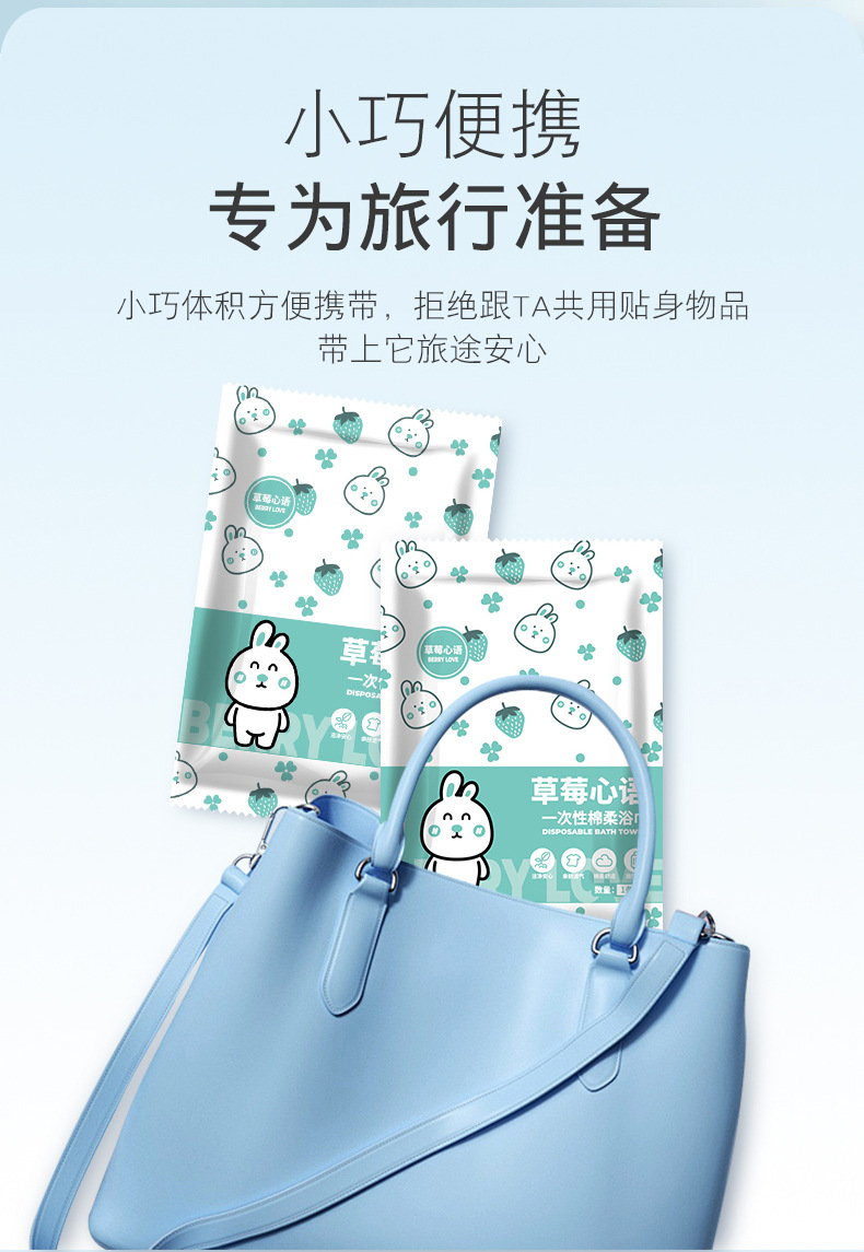 딸기 심장 언어 휴대용 일회용 목욕 타월 여행 별도로 포장 된 순수한 면 두꺼운 호텔 침대
