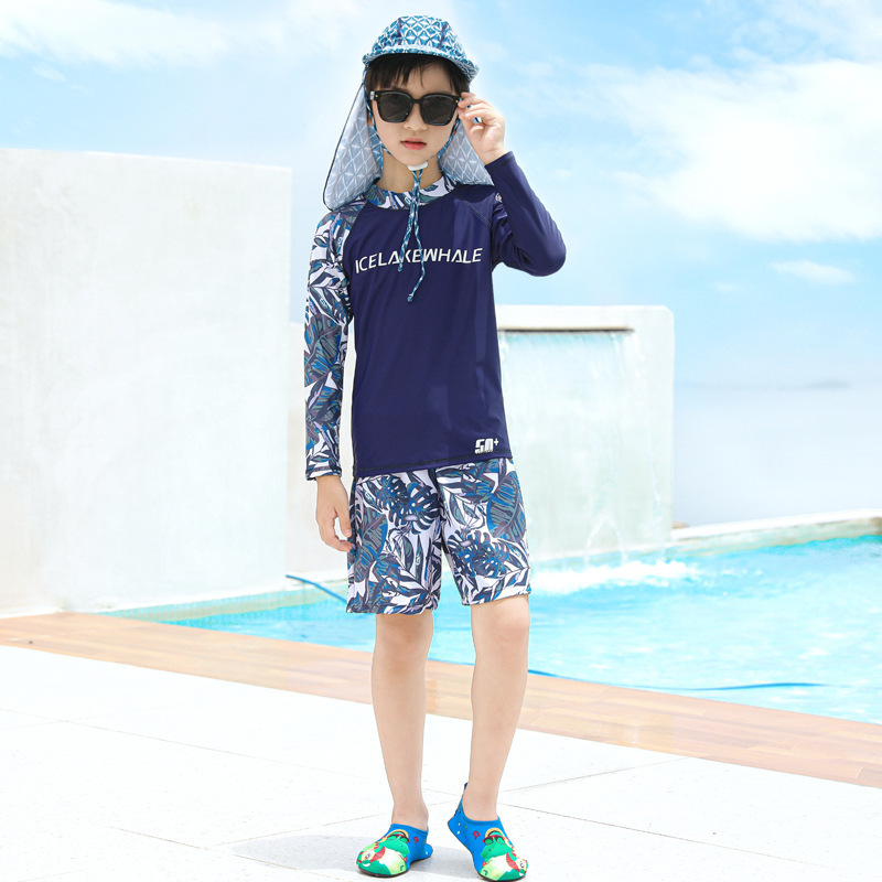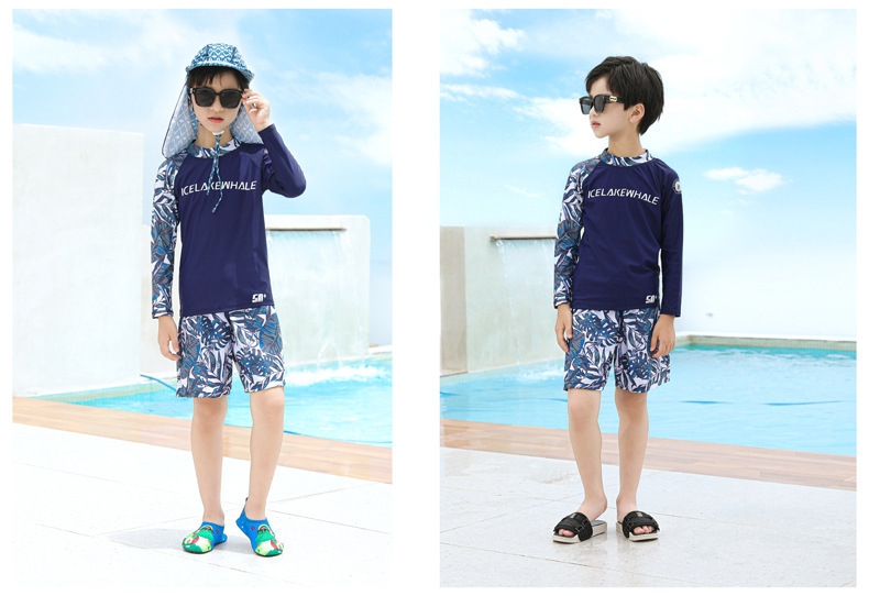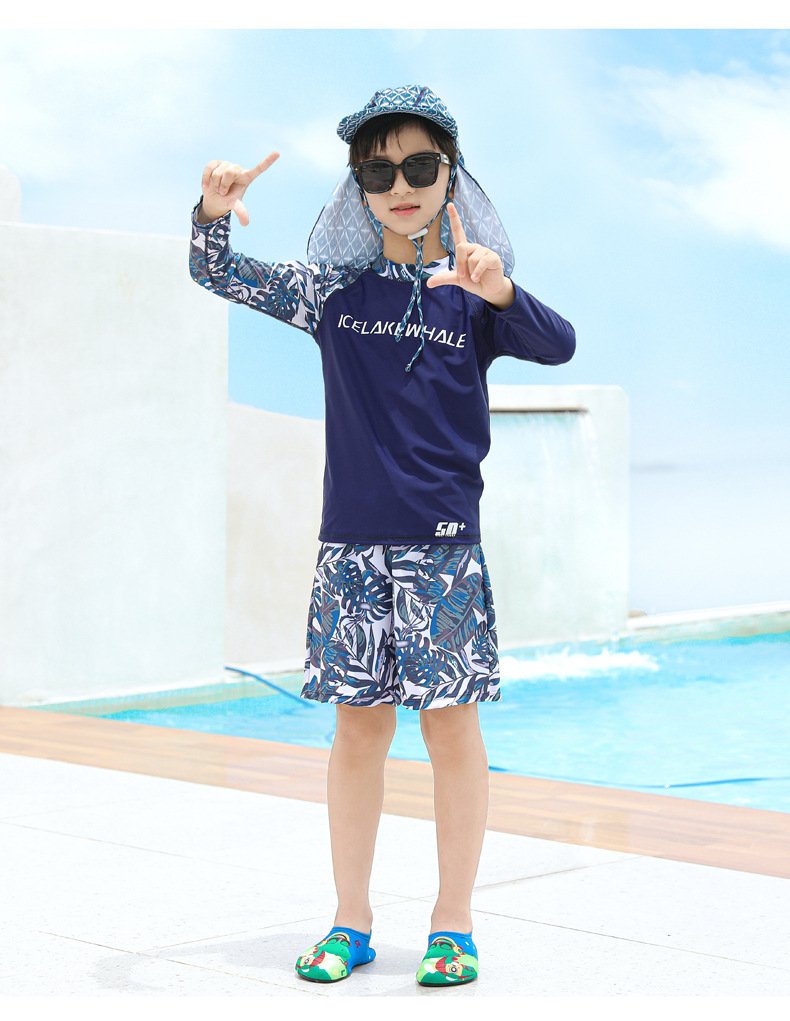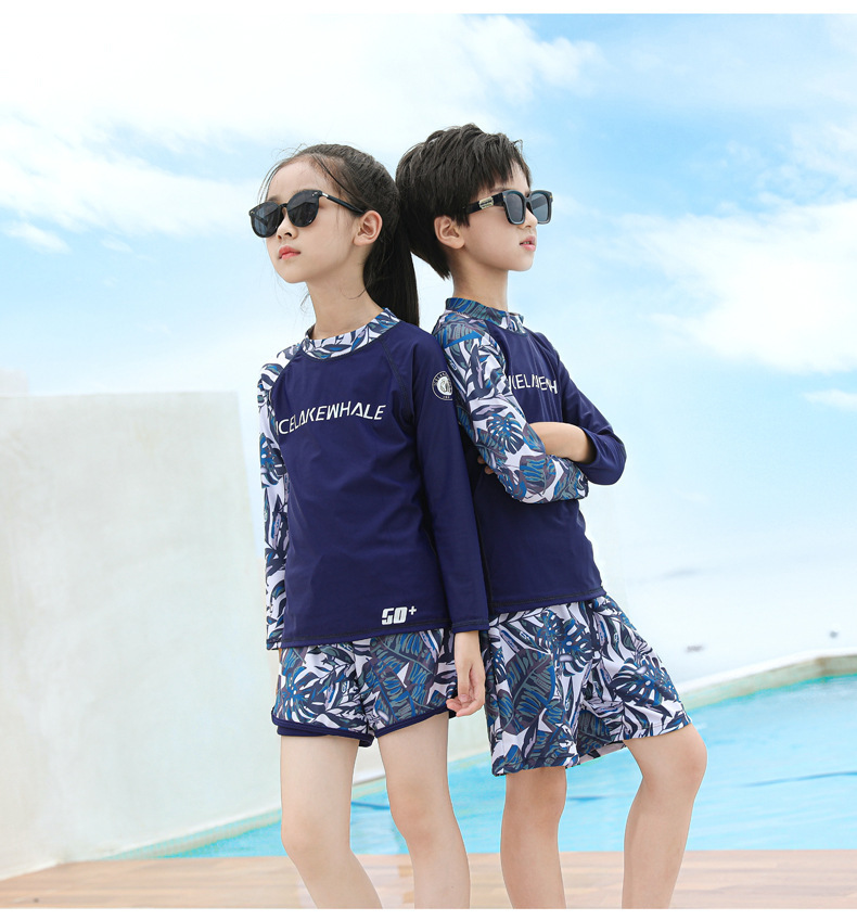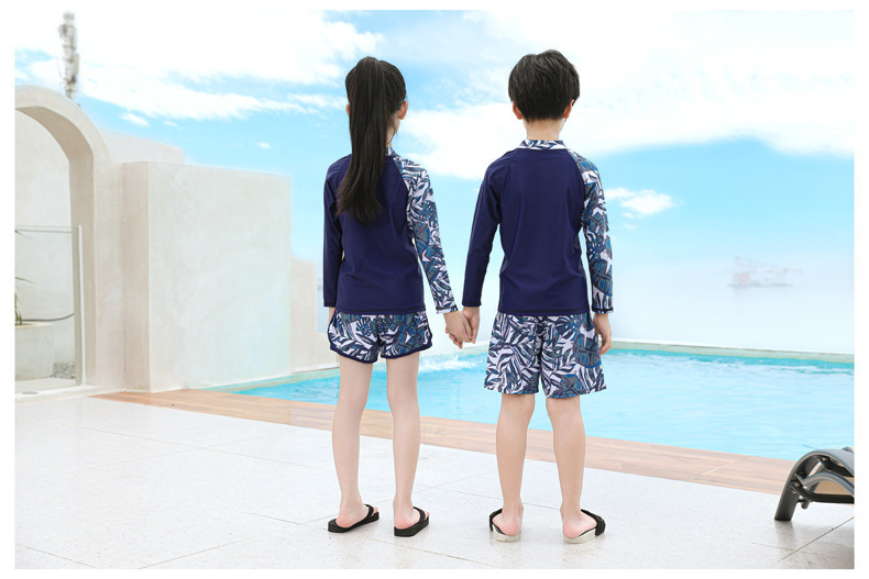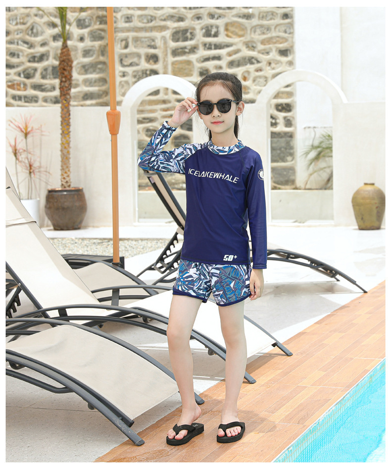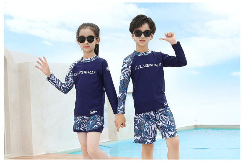 儿童泳衣男童分体长袖长裤2024新款中大童女孩游泳衣温泉泳裤套装