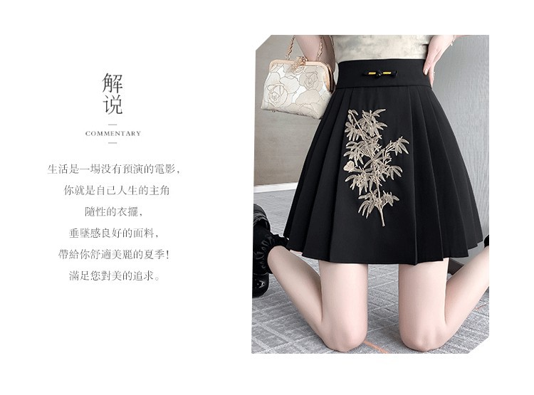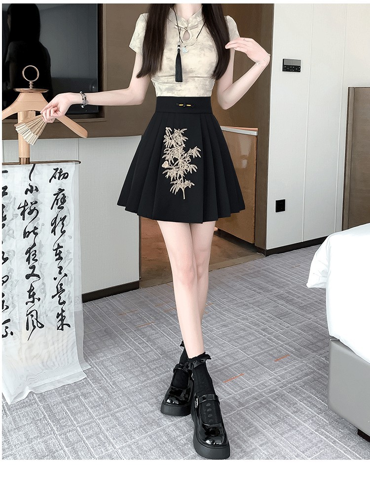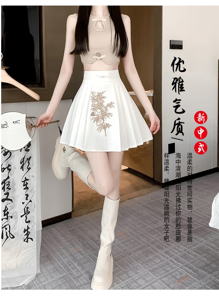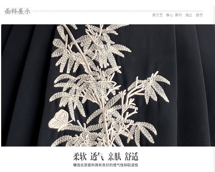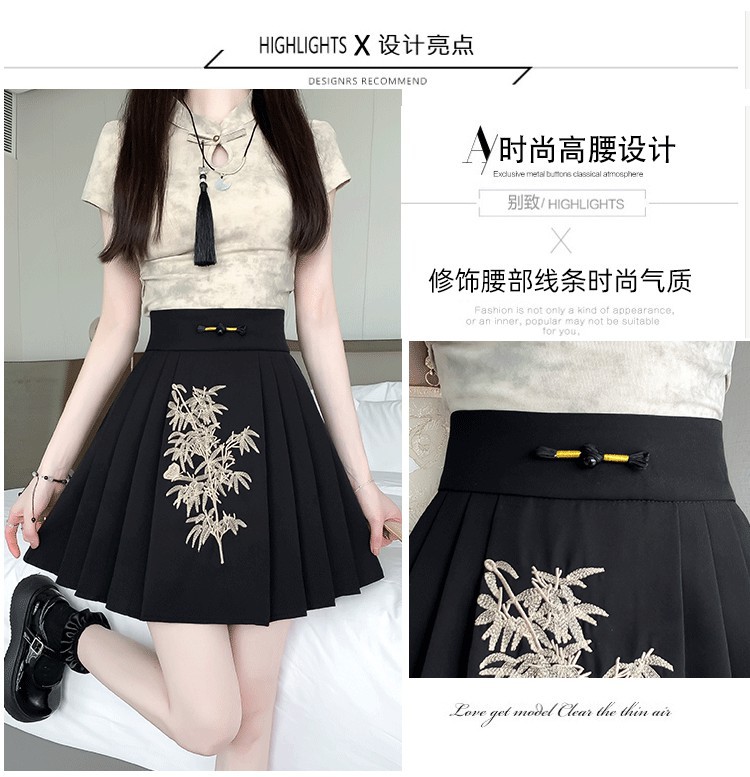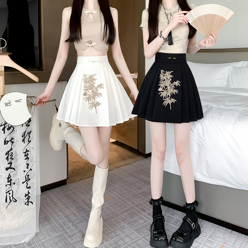 실제 촬영 비디오 3 표준 2024 새로운 중국 스타일 자수 스커트 여성의 높은 허리 엉덩이 커버 얇은 주름 A 라인 스커트