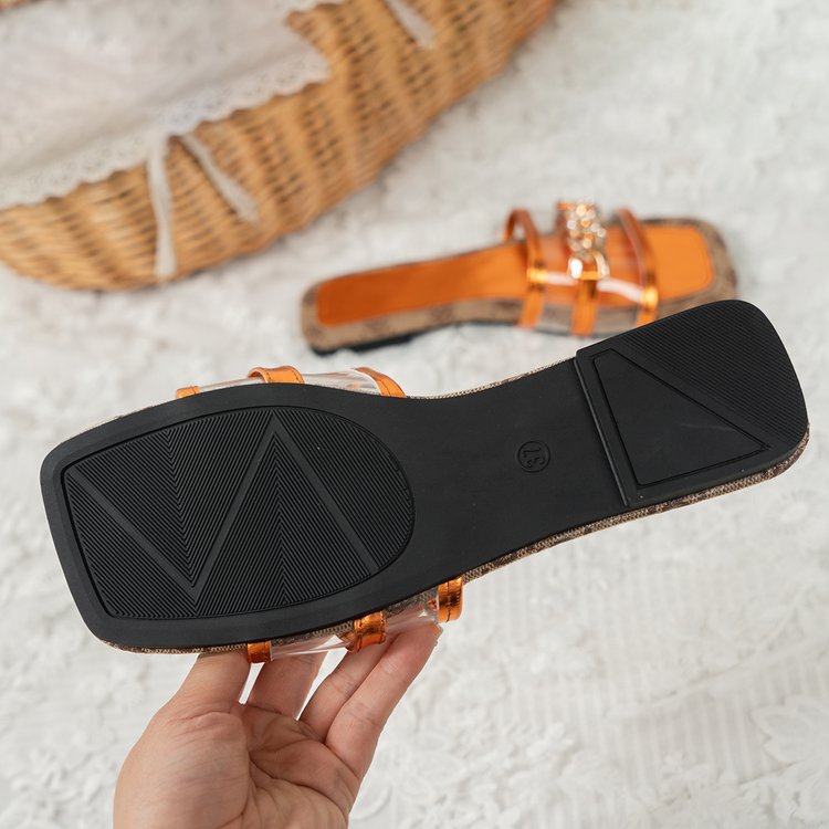 라인스톤 체인 투명 슬리퍼 여성 2024 신작 한국식 여름 올매치 플랫 라운드 헤드 여성용 샌들