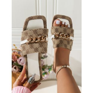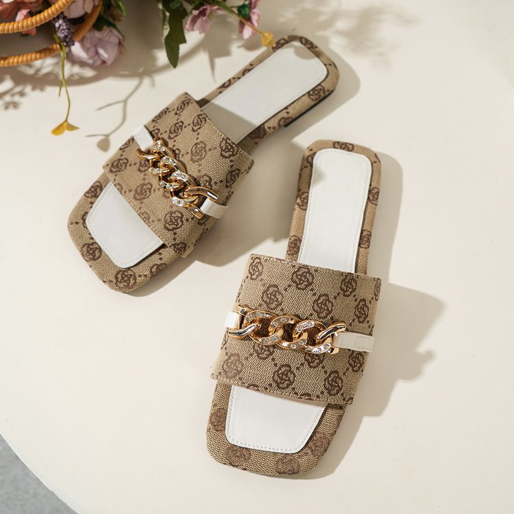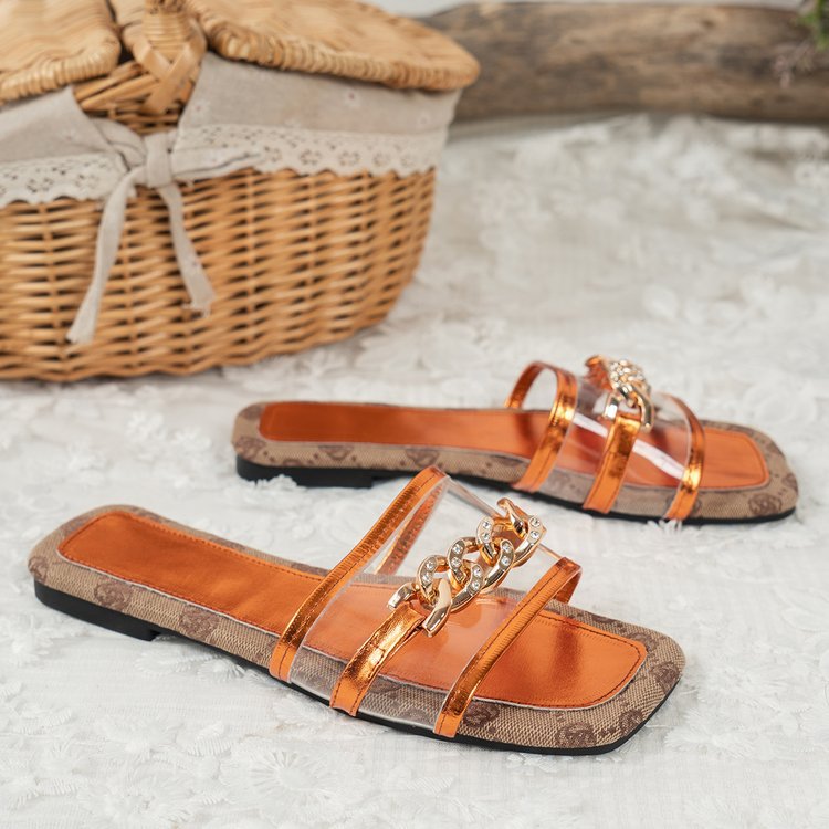 라인스톤 체인 투명 슬리퍼 여성 2024 신작 한국식 여름 올매치 플랫 라운드 헤드 여성용 샌들스토어 가기