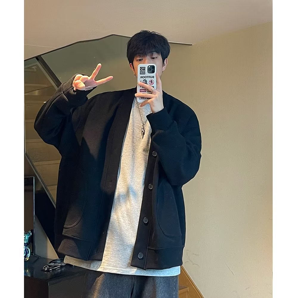 가을과 겨울 버튼 카디건 스웨터 남자 느슨한 긴팔 인스 타 그램 인기 브랜드 올매치 잘 생긴 게으른 재킷 따뜻한 재킷스토어 가기