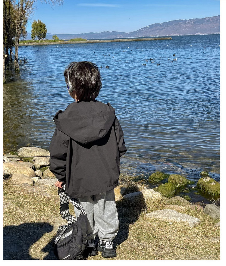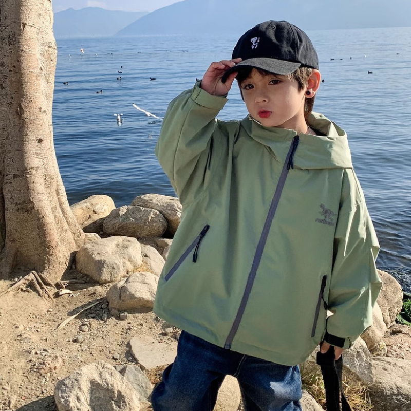 아동용 방수 재킷 2026 한국판 패셔너블하고 스타일리쉬한 남아용 후드 방풍 중대형 아동용 코트 봄 가을용 상의