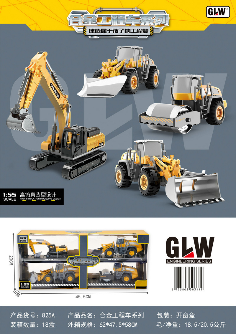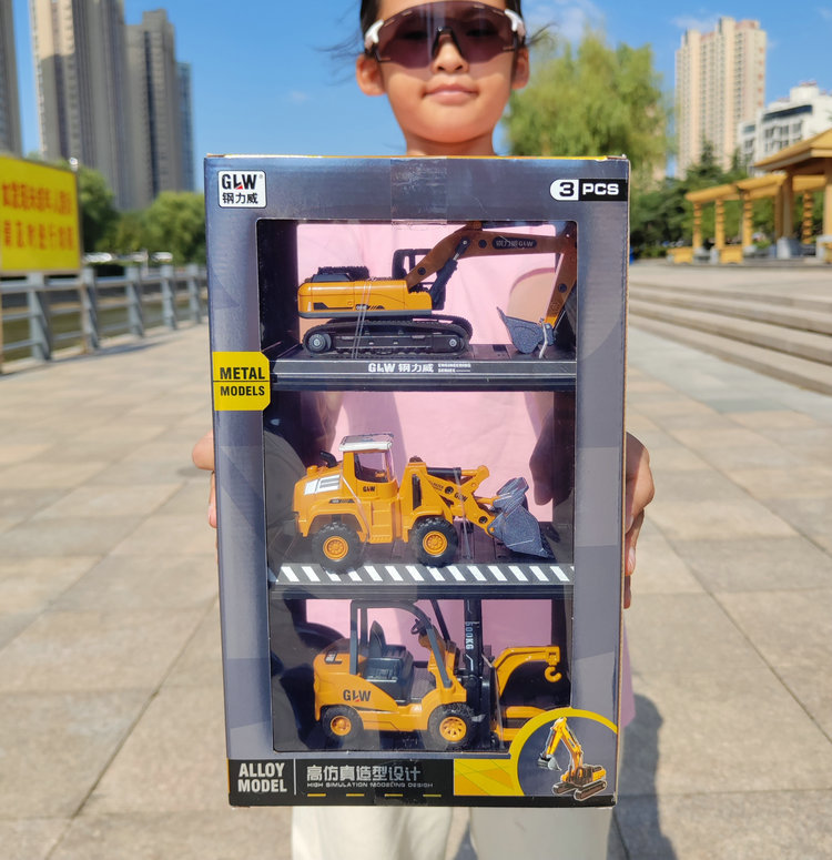 스틸 리웨이 합금 엔지니어링 트럭 굴삭기 어린이 자동차 시뮬레이션 굴삭기 지게차 모델 소년 장난감 도매스토어 가기