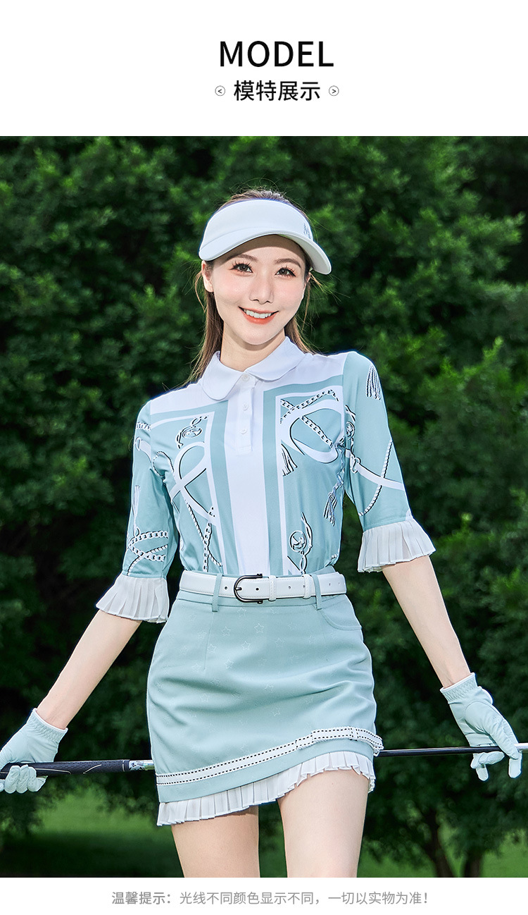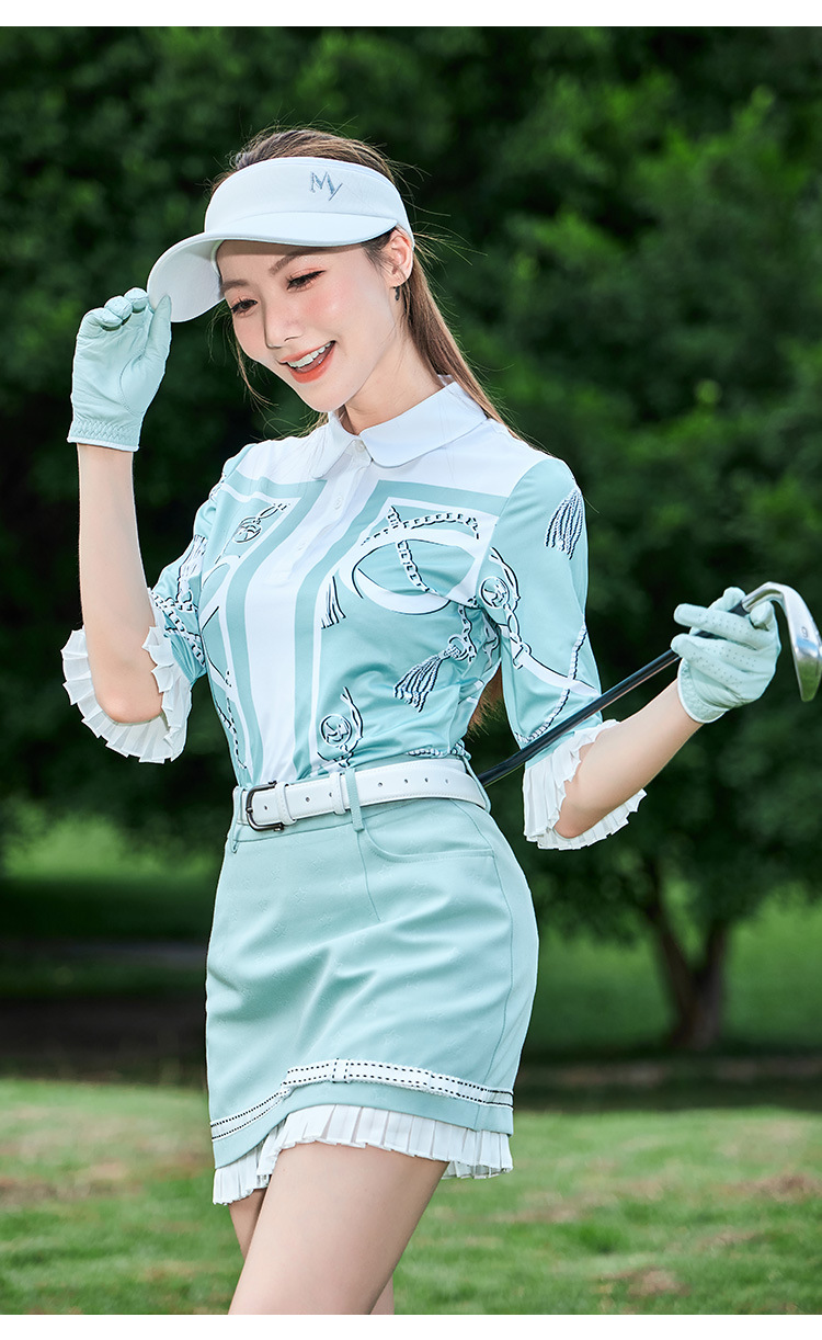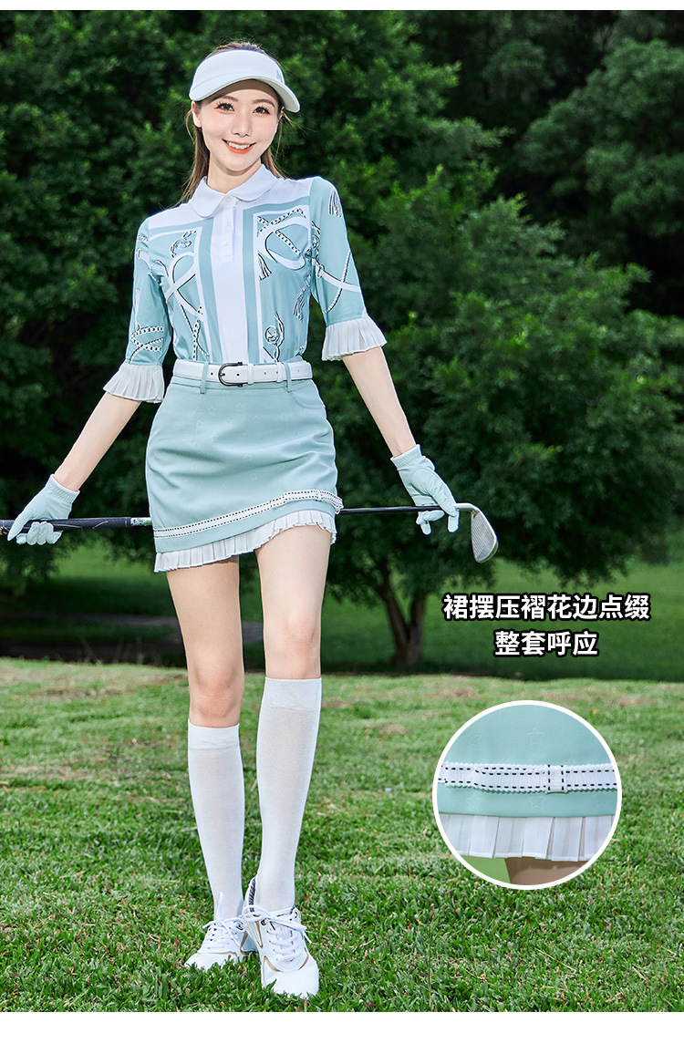 내 골프 여자 하이 엔드 세트 프랑스 그린 미드 슬리브 T Moisture-wicking Jersey Small A Skirt Anti-glare스토어 가기