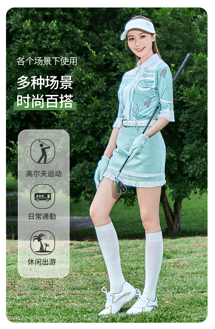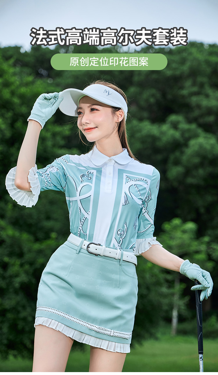 내 골프 여자 하이 엔드 세트 프랑스 그린 미드 슬리브 T Moisture-wicking Jersey Small A Skirt Anti-glare