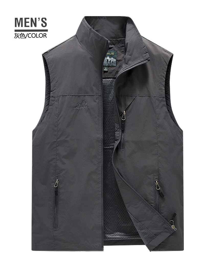 국경 간 봄과 가을 야외 빠른 건조 조끼 남자 캐주얼 사진 낚시 멀티 포켓 조끼 외투 외투 대형 조끼