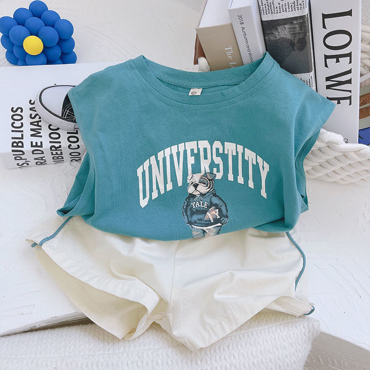 2025 여름 새 소년 조끼 세트 중소 어린이 민소매 티셔츠 아기 유행상의와 바지 투피스 세트스토어 가기