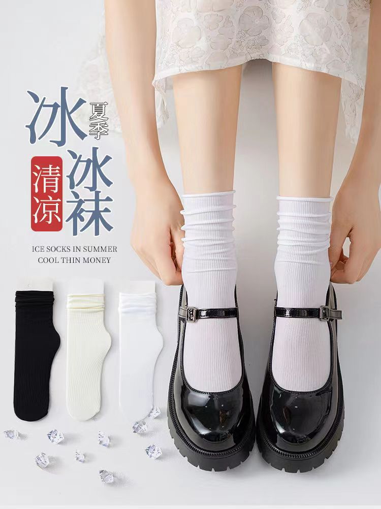 여성용 아이스삭스 여름 얇은 미드튜브 통기성 한국 스타일 화이트 jk 스택삭스 여성용 롱삭스 트렌디하고 다용도스토어 가기