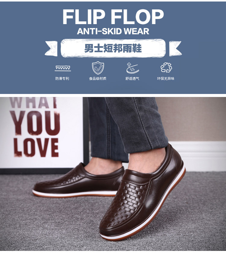 로우 탑 비 신발 남성 물 신발 성인 힘줄 바닥 방수 신발 얕은 입 고무 신발 미끄럼 방지 작업 오버 슈즈 도매 수출스토어 가기