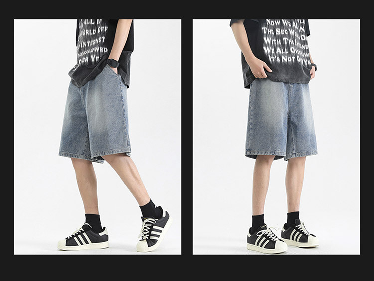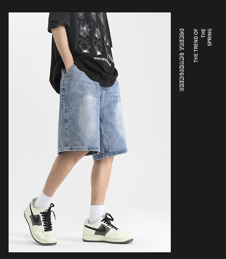 여름 툴링 데님 반바지 남자의 2024 새로운 도착 느슨한 스트레이트 바지 미국 스타일 하이 스트리트 트렌디 브랜드 외부 착용 5 점스토어 가기