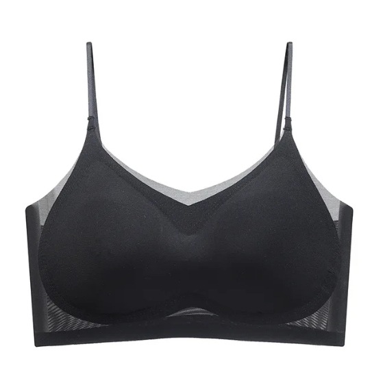 얇은 아름다운 뒤 아이스 실크 속옷 여성의 작은 가슴 푸시 업 비 스틸 링 비 마킹 여성을위한 작은 일체형 통기성 스포츠 브래지어