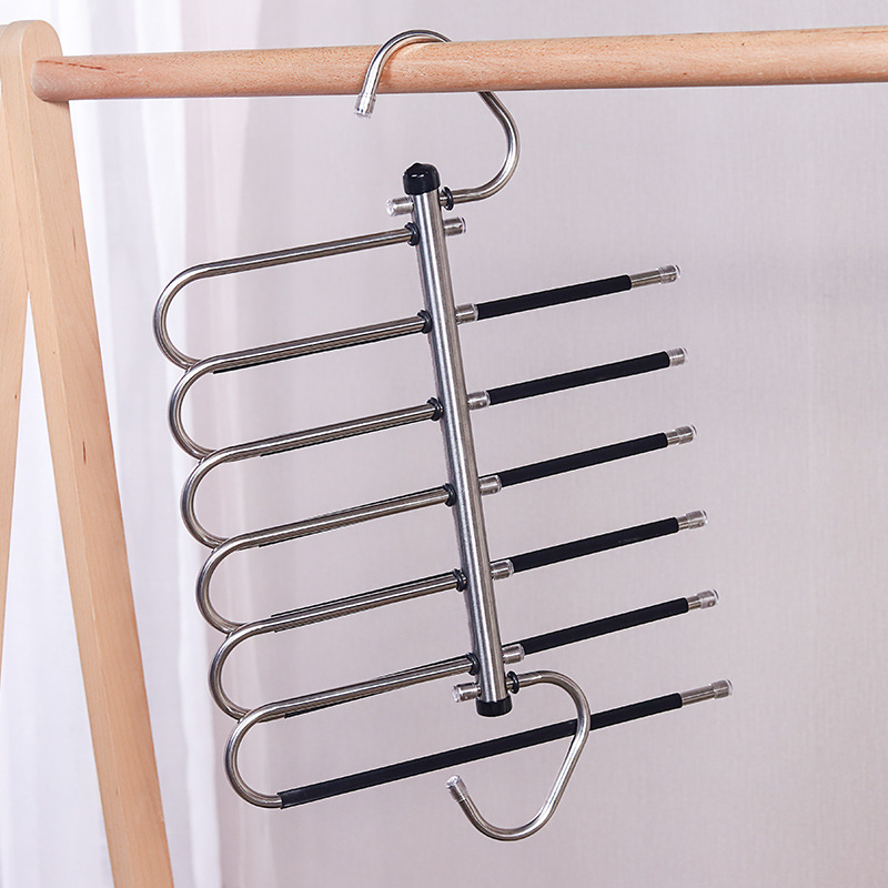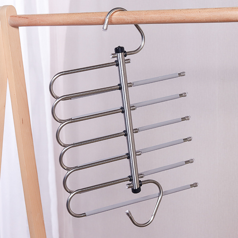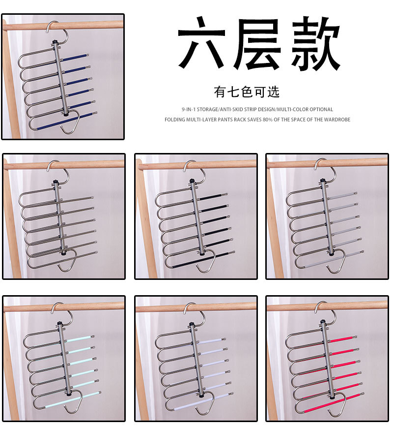 옷 옷걸이 바지 랙 스테인레스 스틸 다층 접이식 수축 캐비닛 가정용 기숙사 발코니 바지 랙 제조 업체 도매스토어 가기