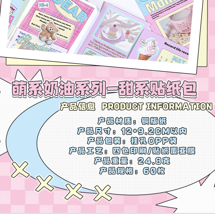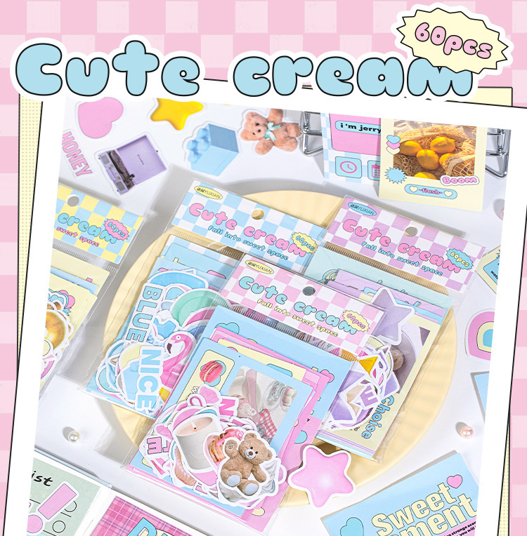 언어 무료 코팅 종이 스티커 가방 돋아 크림 달콤한 한국어 스타일 소재 손 계정 DIY 장식 콜라주