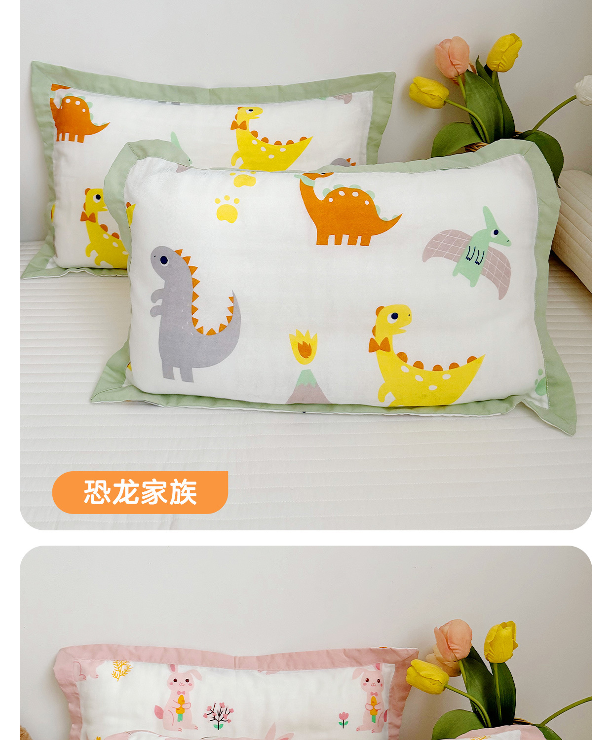 • 공룡 가족 (대나무 면화 베갯잇이 뿌리 항균 베개) 투피스 세트