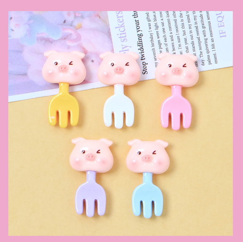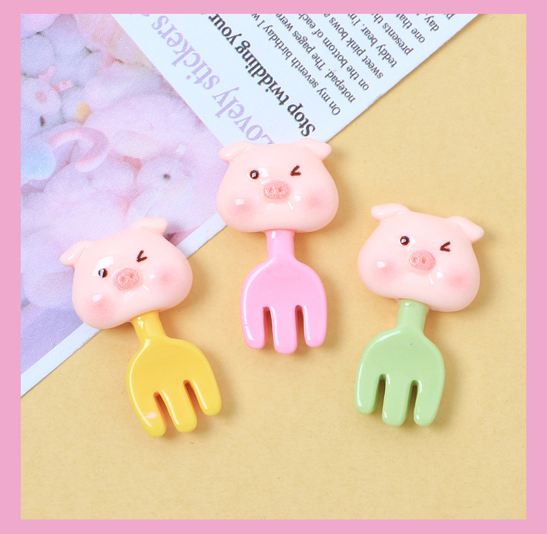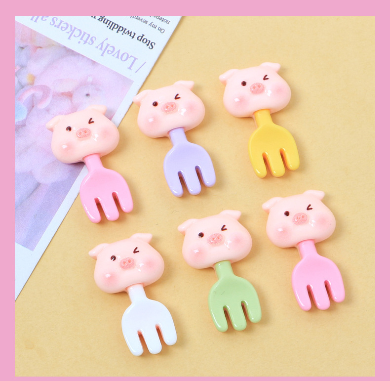 돼지 포크 만화 크림 접착제 액세서리 구멍 신발 버클 소재 수지 액세서리 diy 보석 헤어 클립 도매