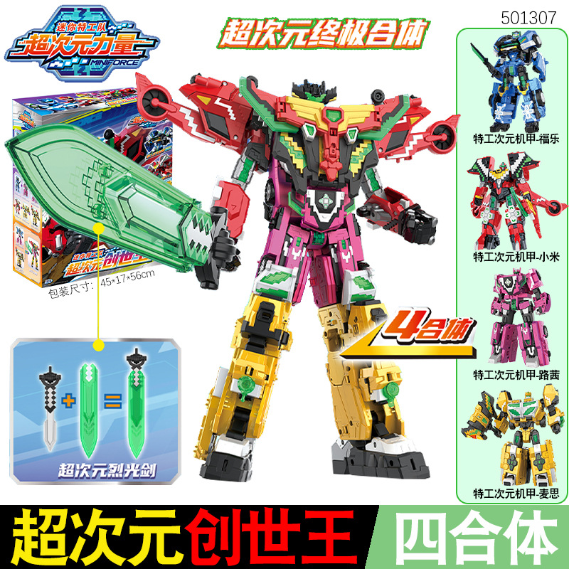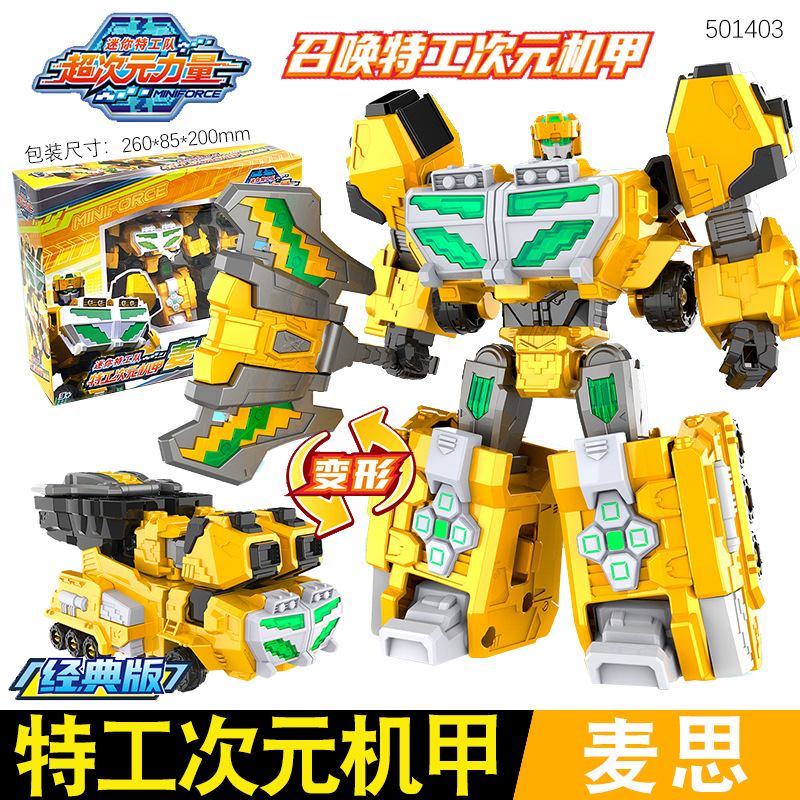 미니 특수부대 6차원 메카 변신 로봇 어린이용 음향 및 조명 변신기 무기 가동형 피규어 장난감스토어 가기