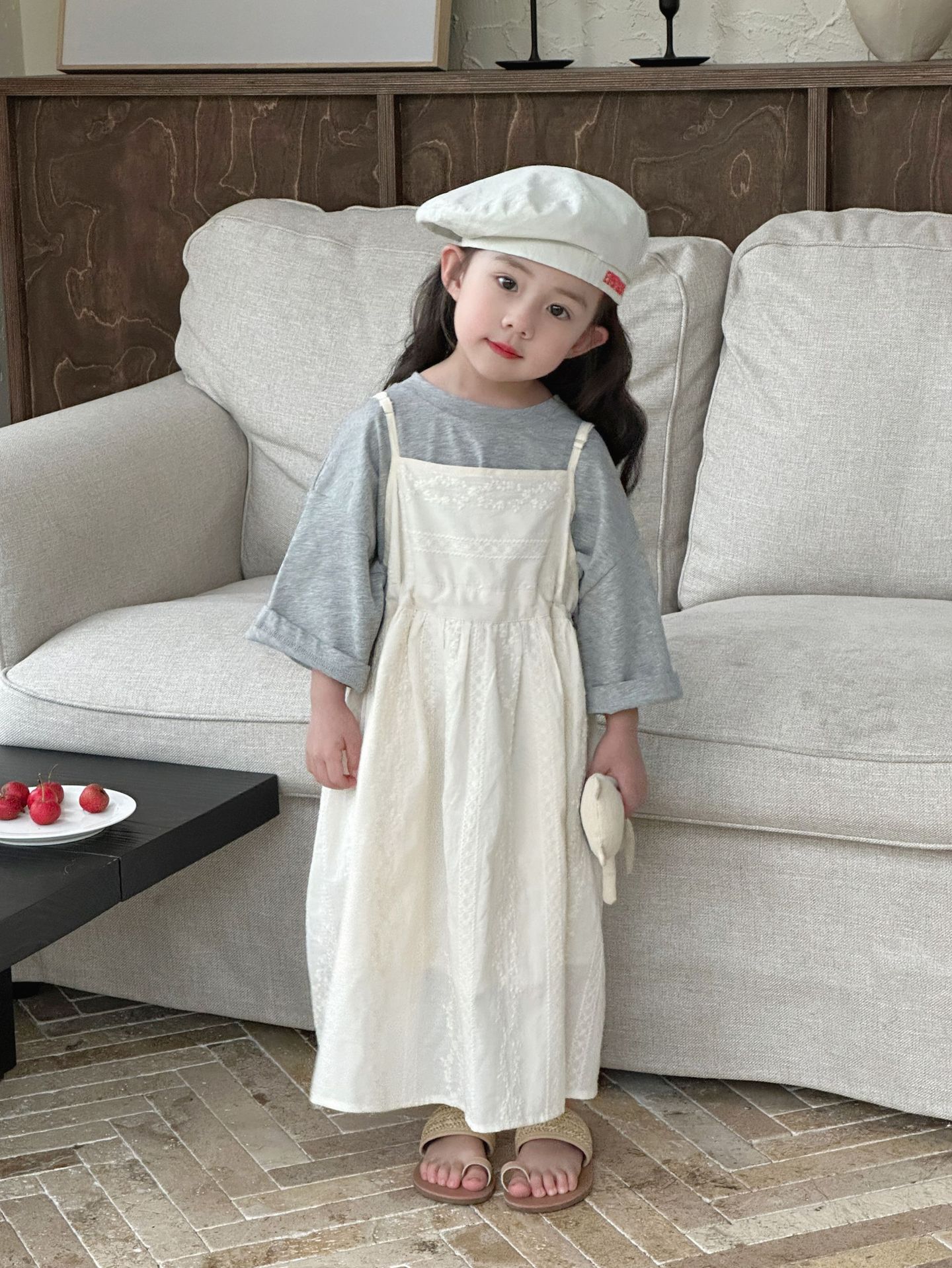 면 멀티 미터 2024 봄과 여름 마법사 자수 슬립 스커트 한국식 롱 스커트 어린이 봄과 여름 스커트 코튼 미드 슬리브 티셔츠스토어 가기
