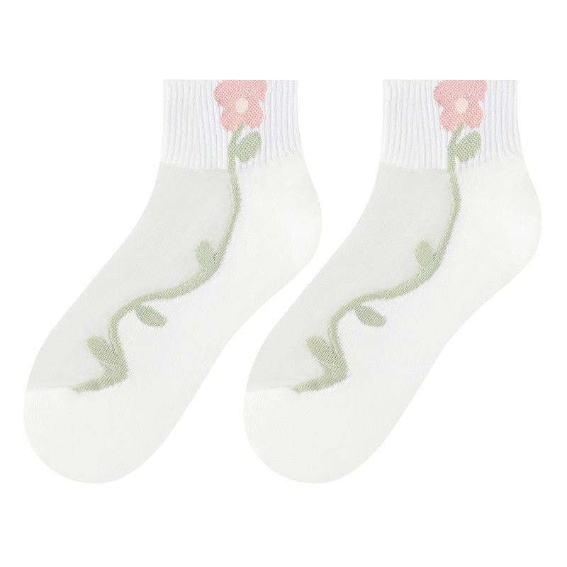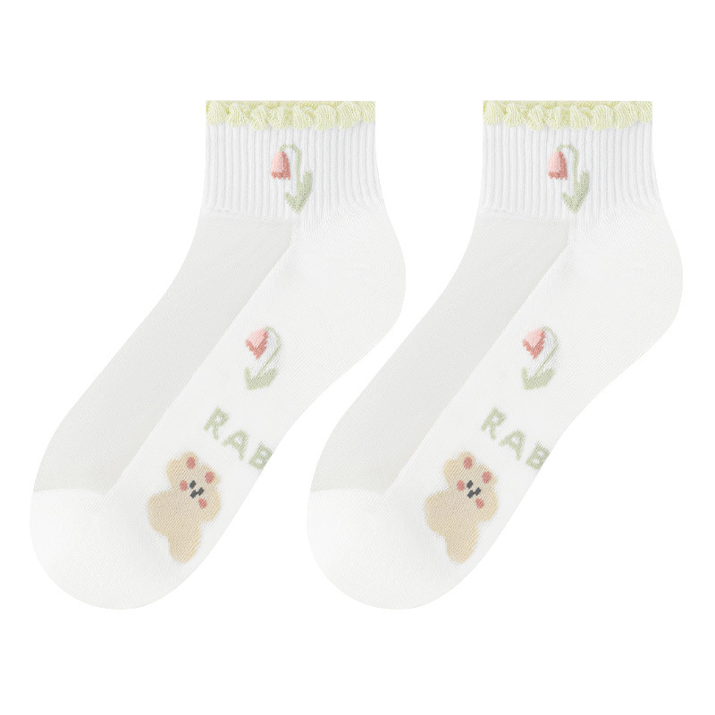 봄과 여름 새로운 모리 카드 실크 스타킹 튤립 얇은 녹색 양말 귀여운 레이스 코튼 양말 주지 양말스토어 가기