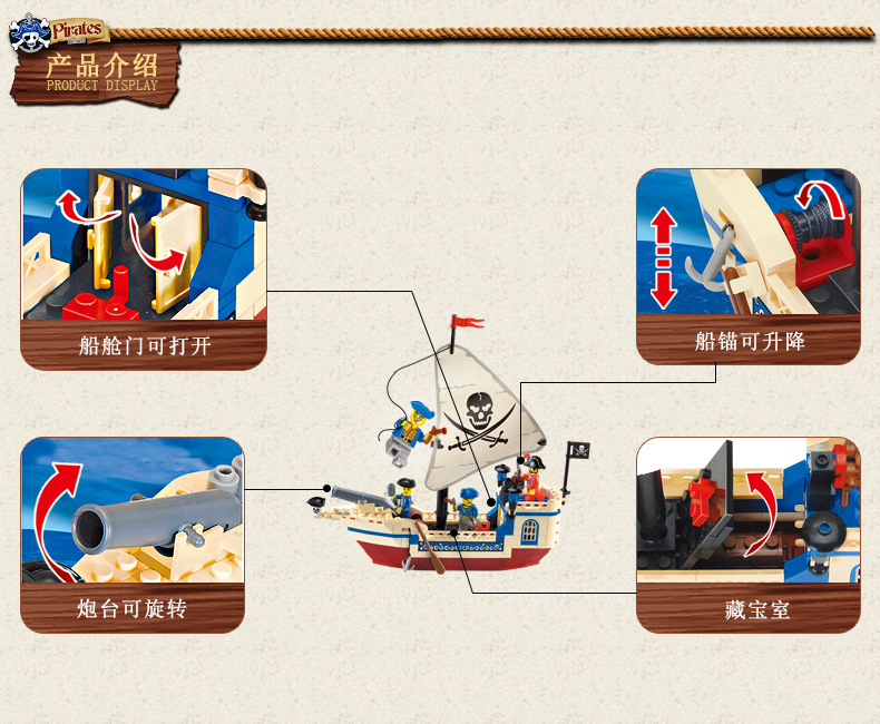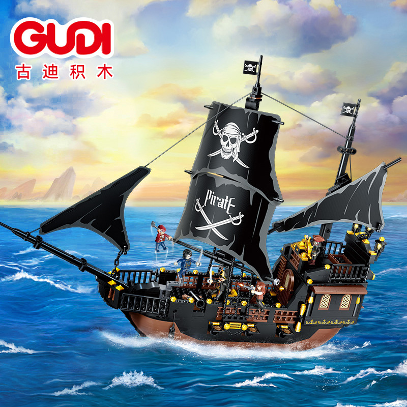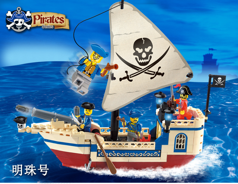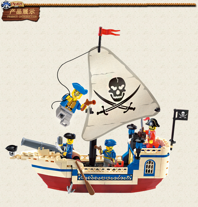 레고와 호환되는 계몽 블록 어린이 교육용 조립 해적선 장난감 소년용 작은 입자 조립 모델 퍼즐스토어 가기