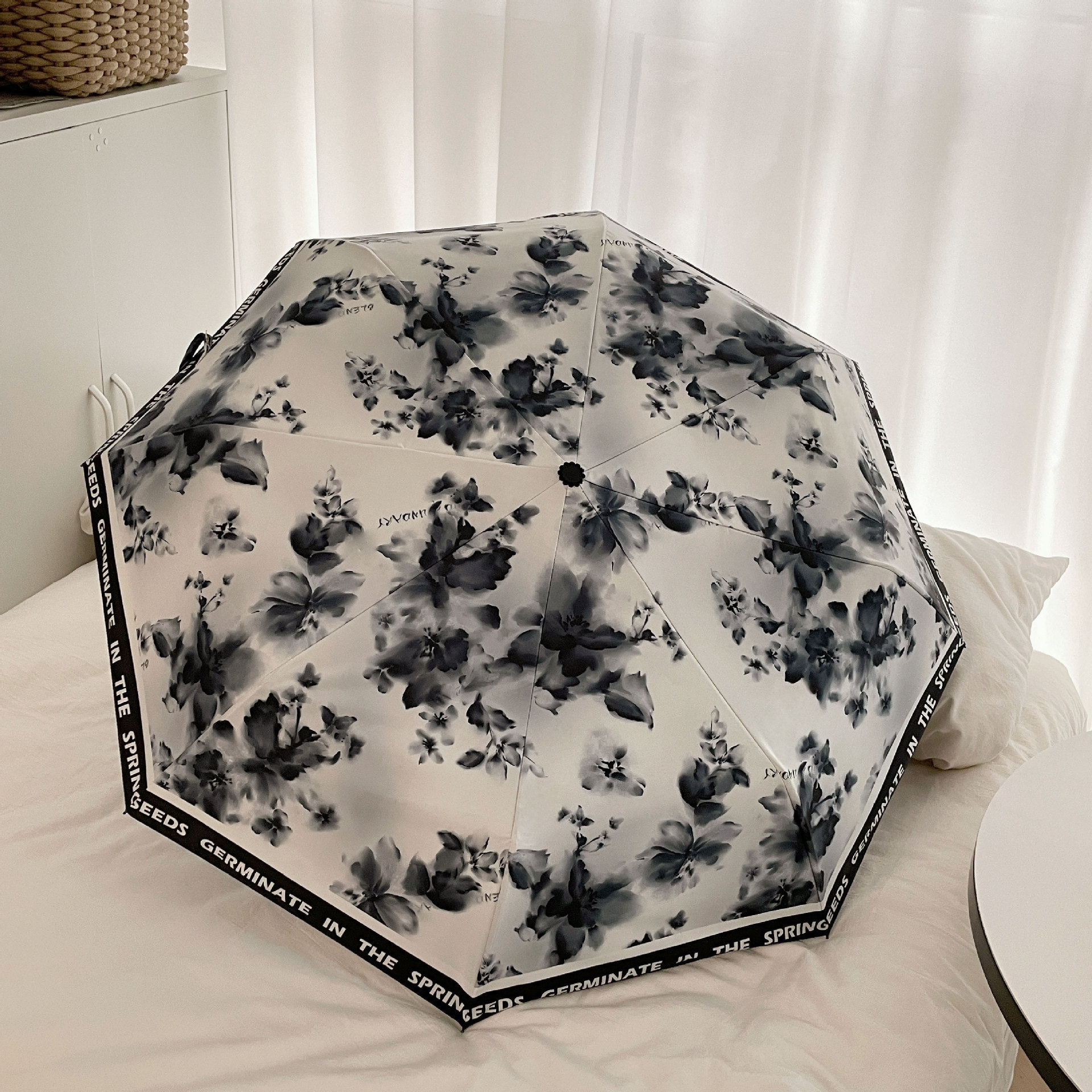 잉크 나비 완전 자동 우산 접히는 맑고 비오는 이중 목적 태양 우산 선 스크린 자외선 블랙 접착제 햇빛 햇빛 우산