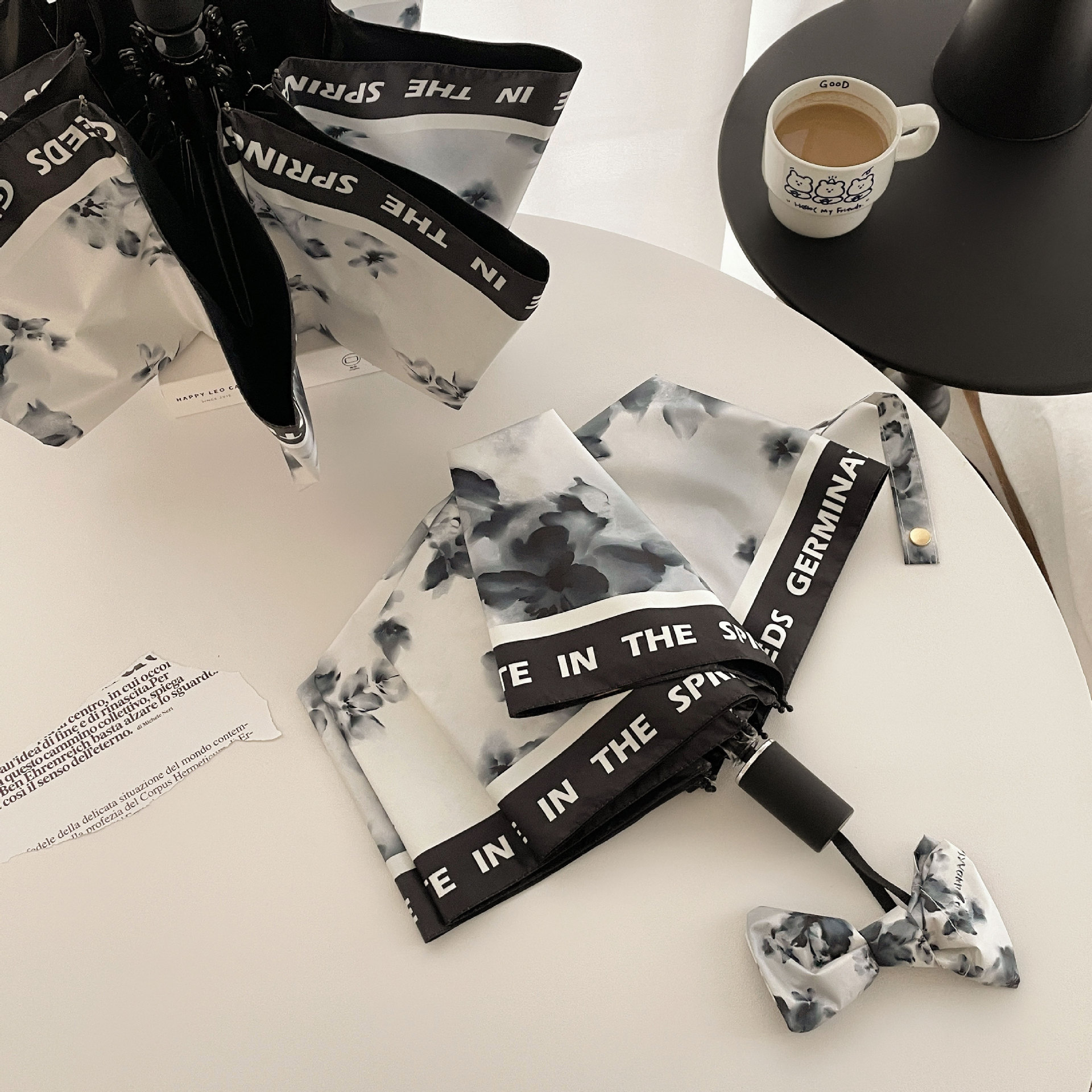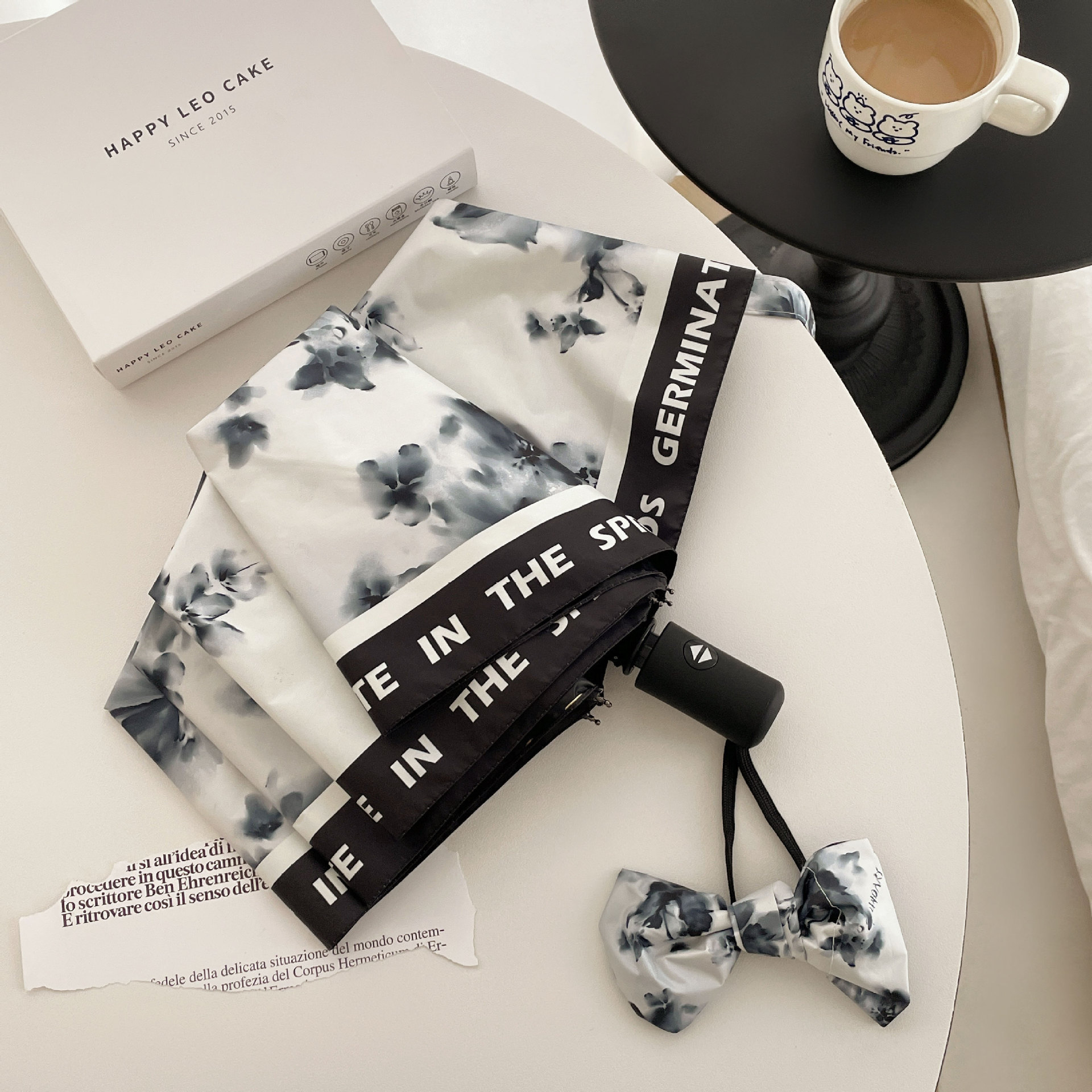 잉크 나비 완전 자동 우산 접히는 맑고 비오는 이중 목적 태양 우산 선 스크린 자외선 블랙 접착제 햇빛 햇빛 우산스토어 가기