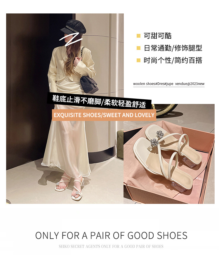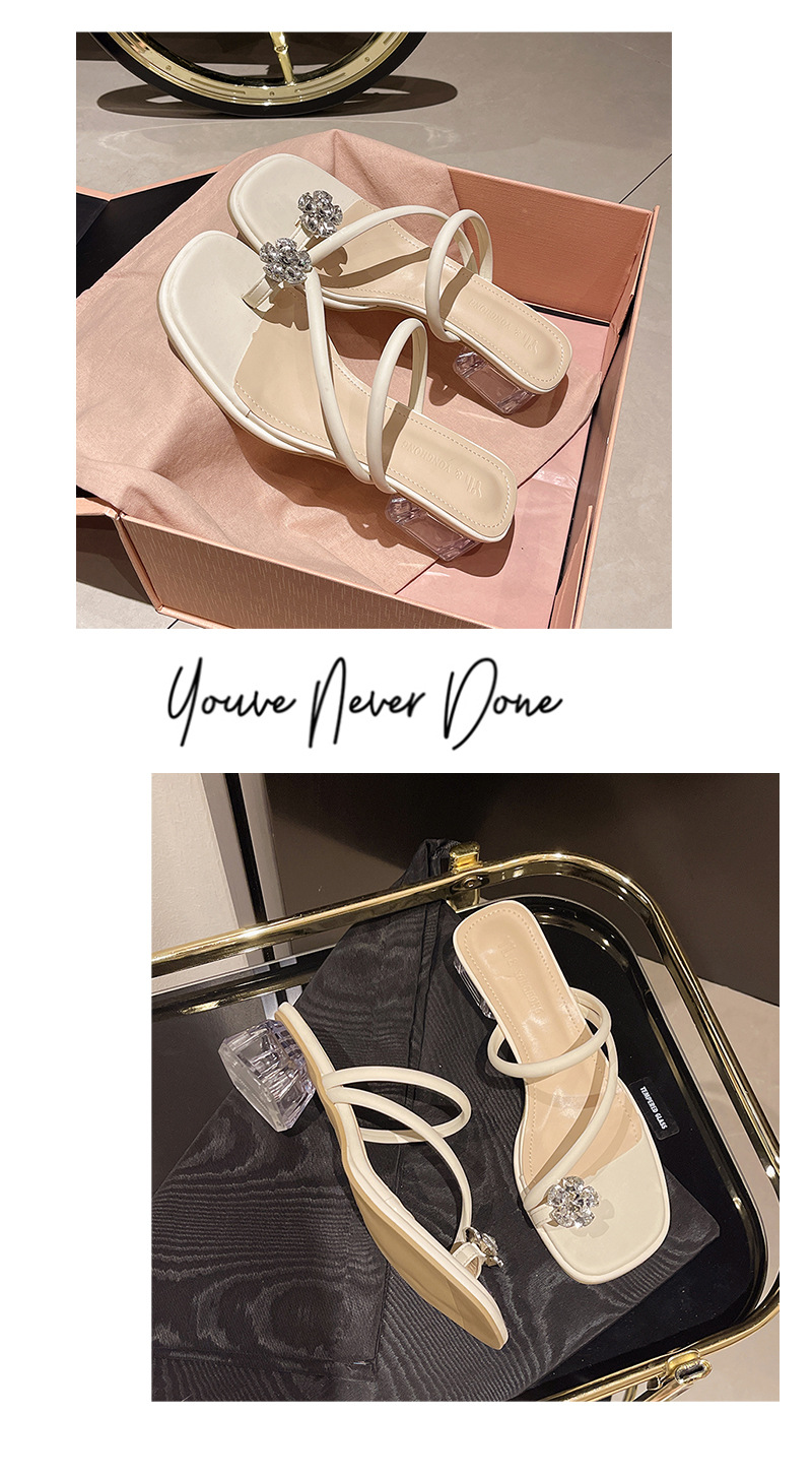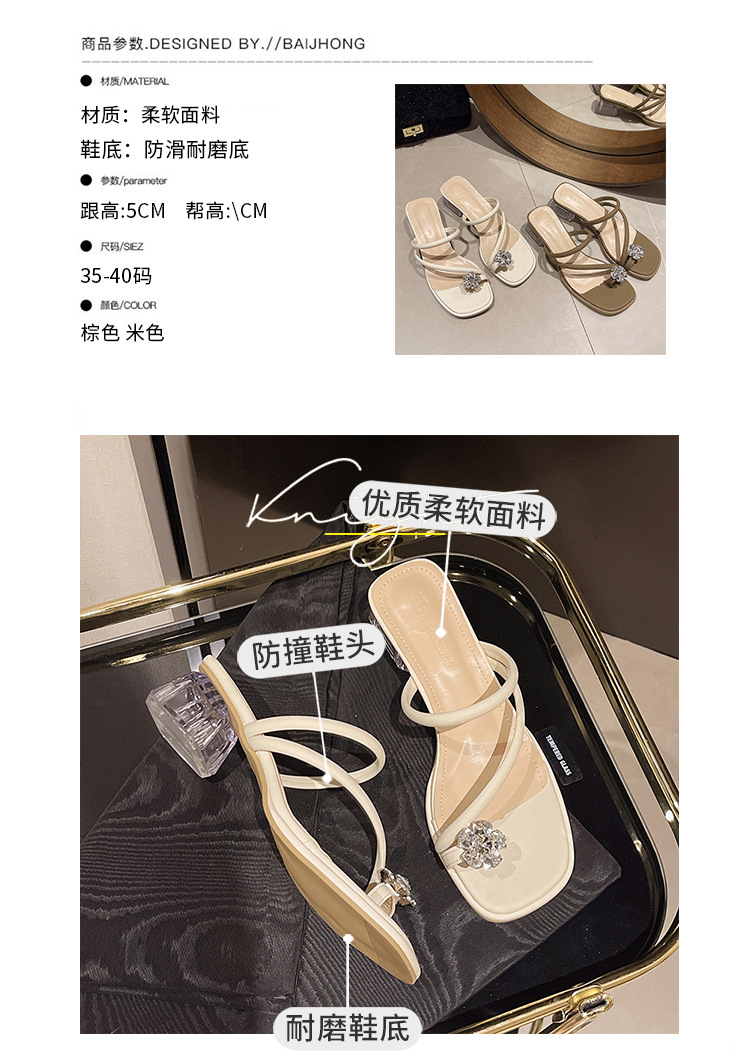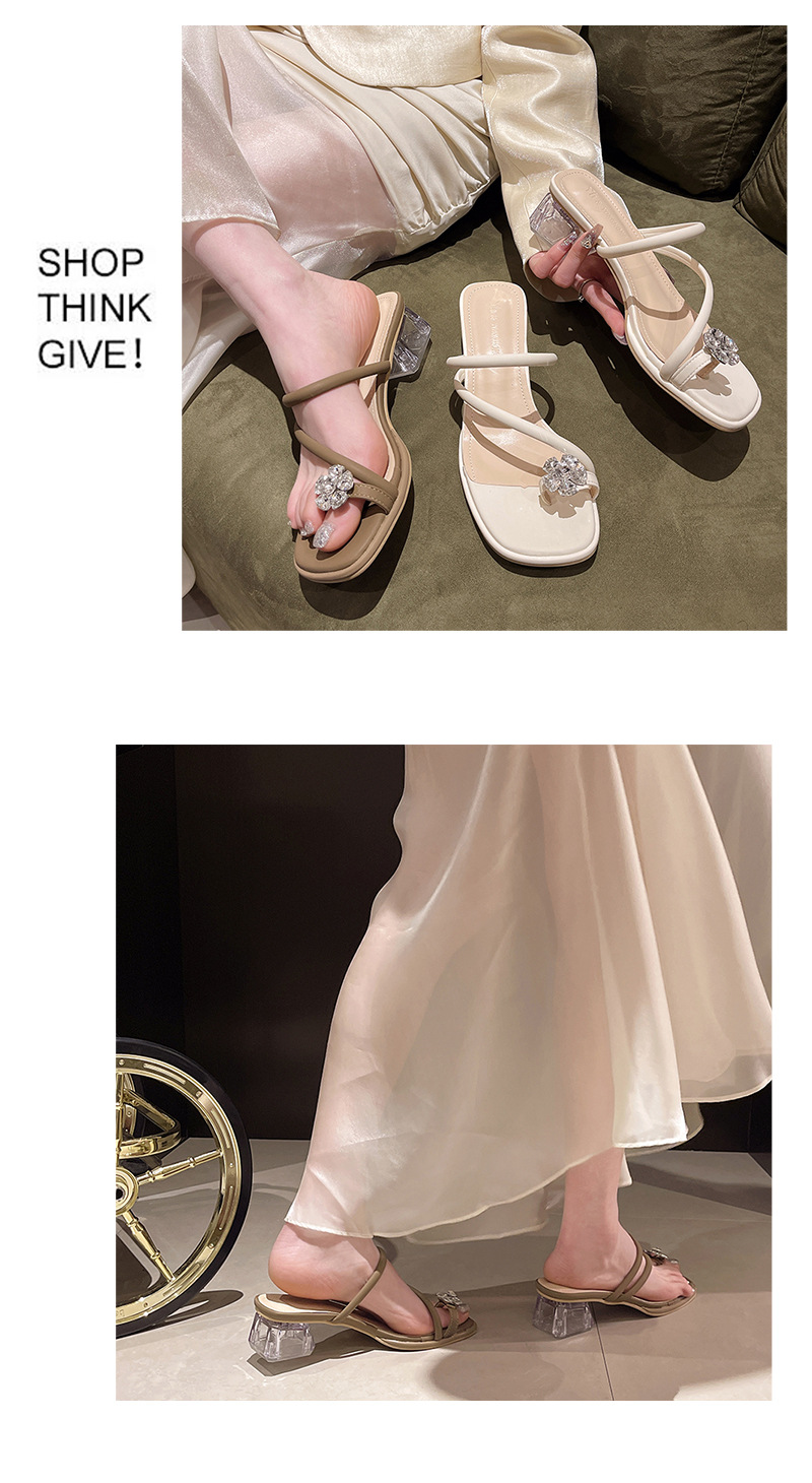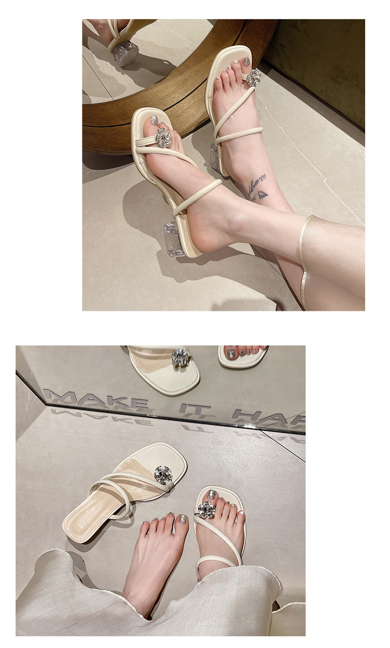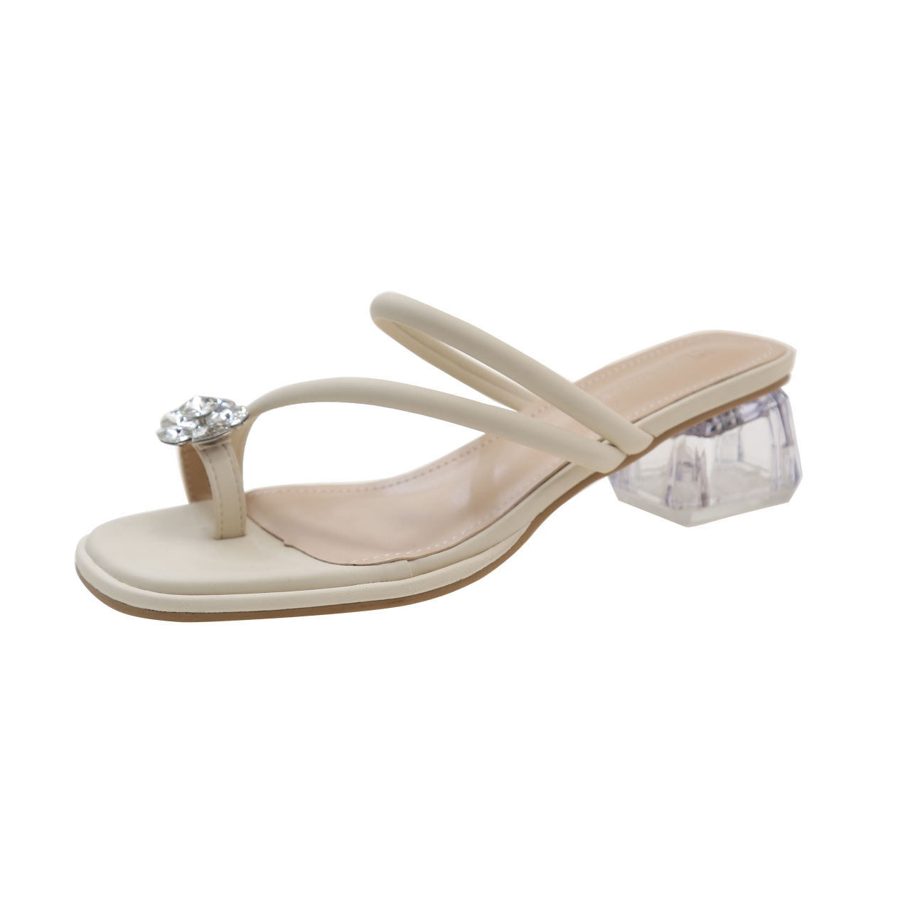 발가락 슬리퍼 여름 의상 여성의 2024 새로운 크리스탈 유행 플립 플롭-스커트 요정 진주 샌들스토어 가기