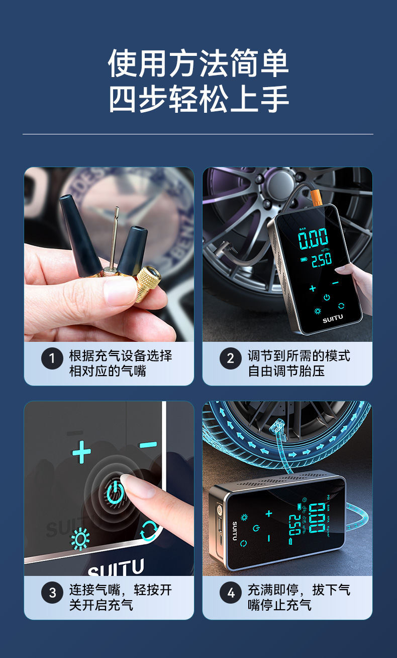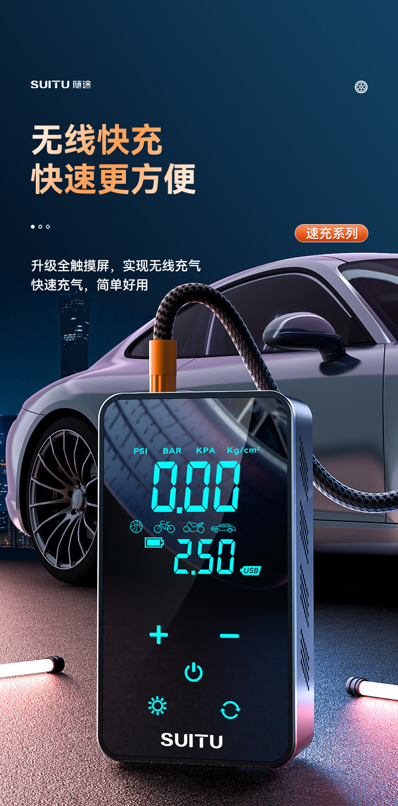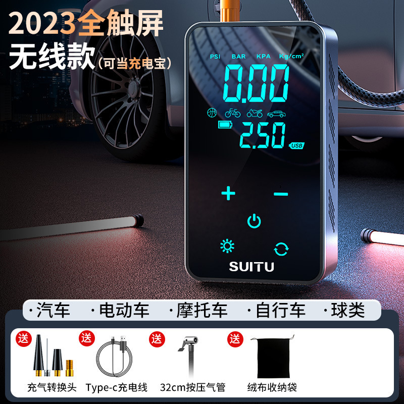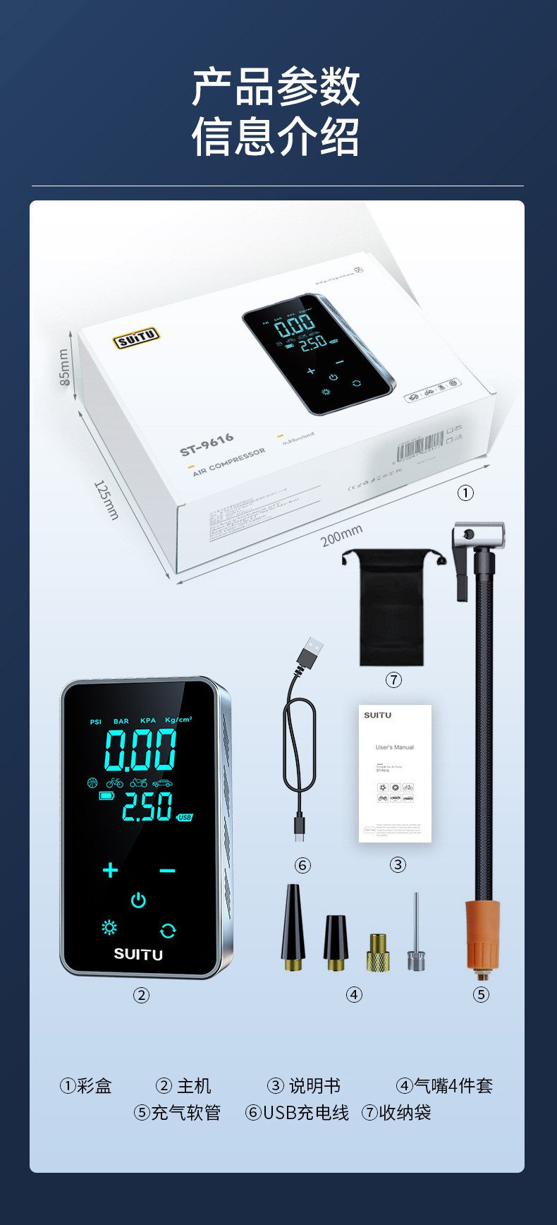 【ST-9616C 无线】主机*1,充气软管*1,充气嘴4件套,Type-C充电线,布袋,说明书*1,彩盒*1