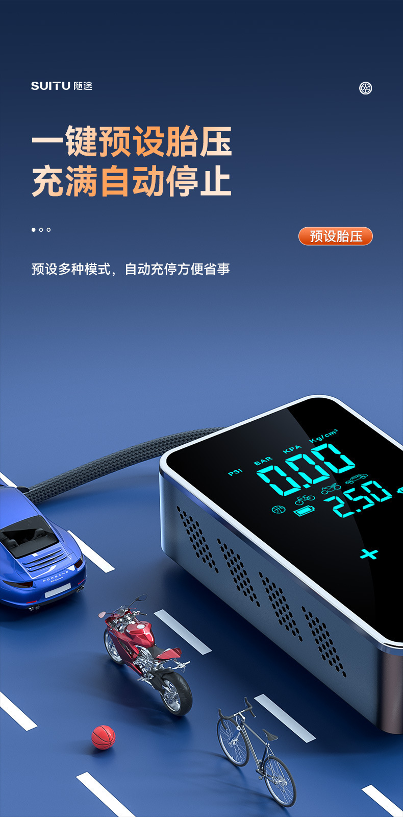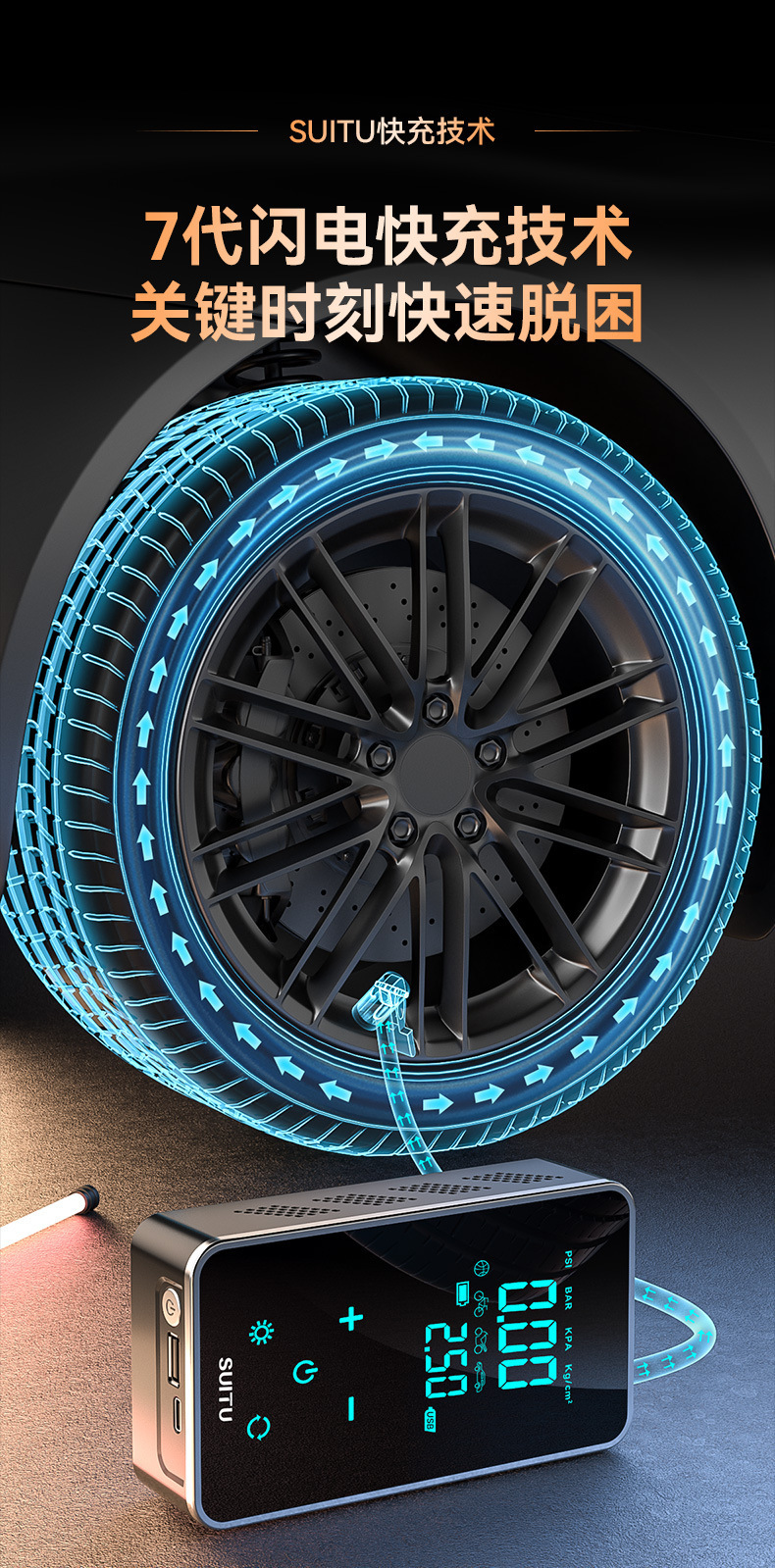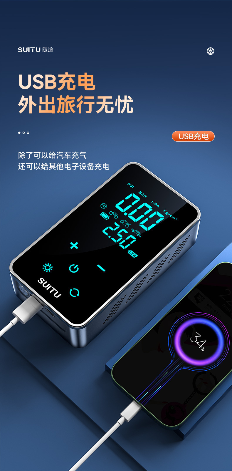 【ST-9616C 无线】主机*1,充气软管*1,充气嘴4件套,Type-C充电线,布袋,说明书*1,彩盒*1