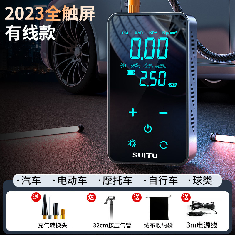 【ST-9616A 有线 】主机*1,充气软管*1,充气嘴4件套,3M美式12V线,布袋,说明书*1,彩盒*1