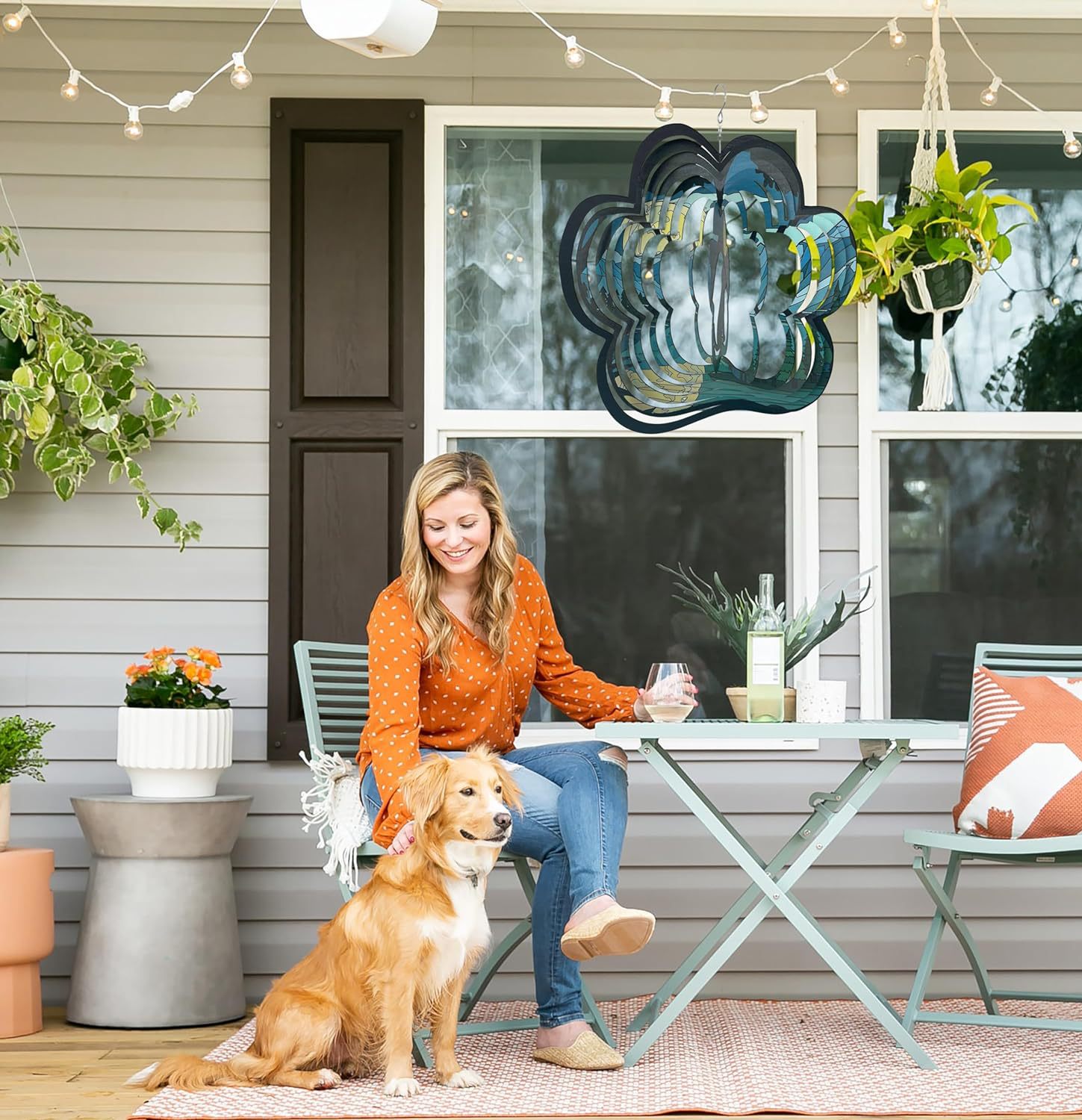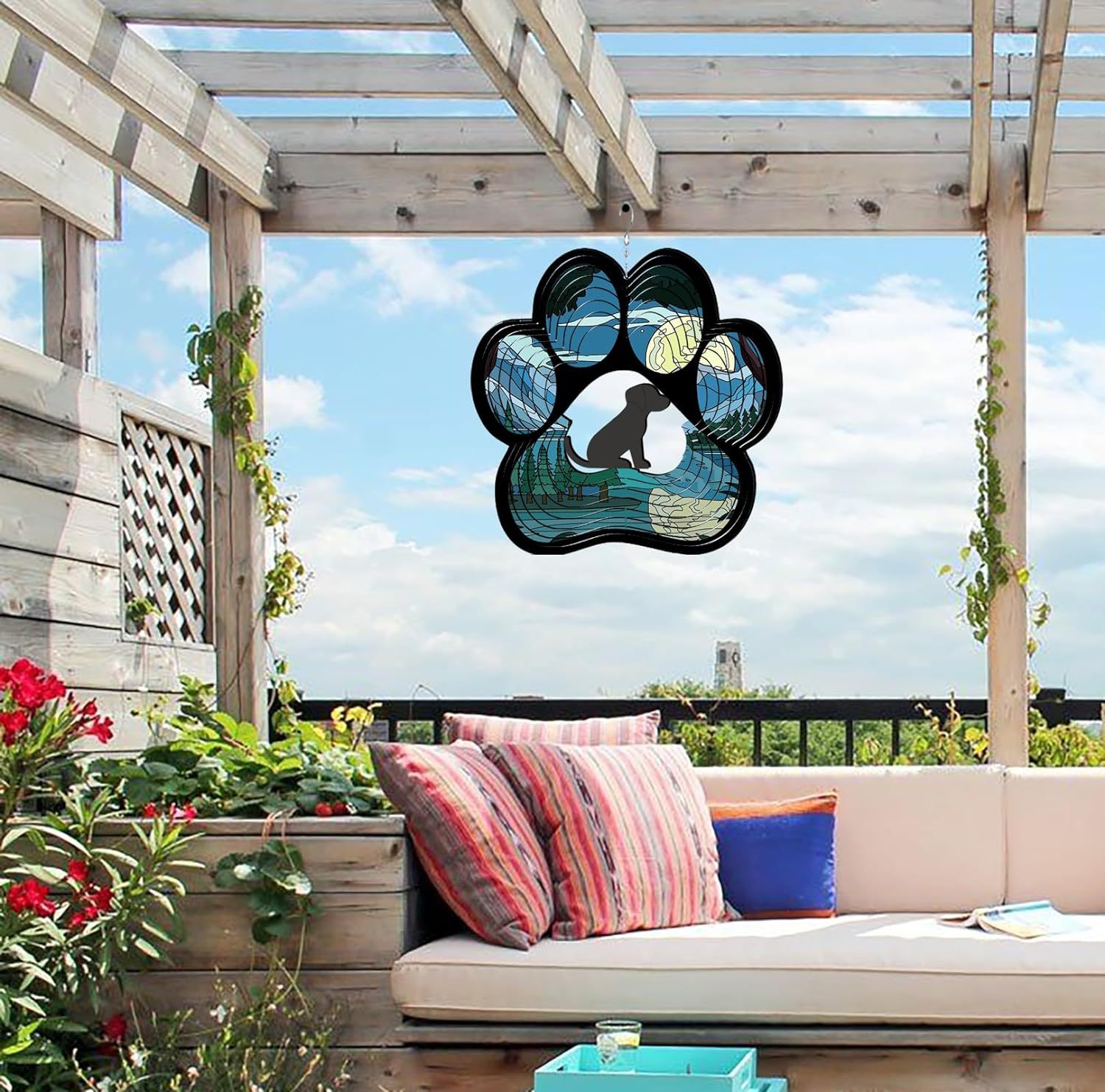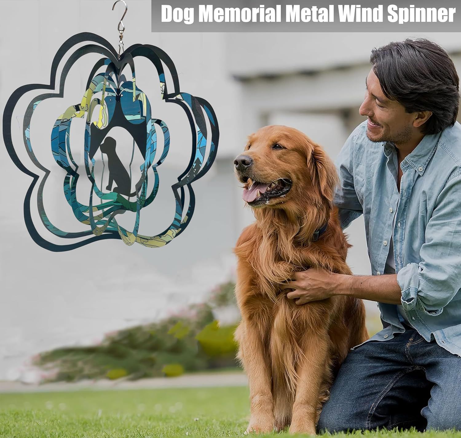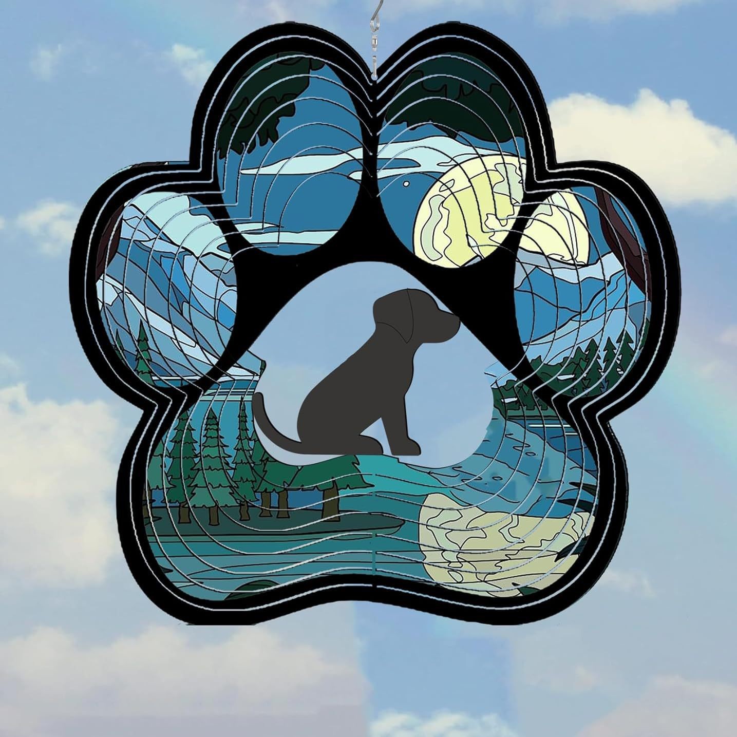 개 바람 벨 기념 스피너 애완 동물 선물 여성 문 12 인치 3D 스테인레스 스틸 교수형 바람 스피너 금속 장식