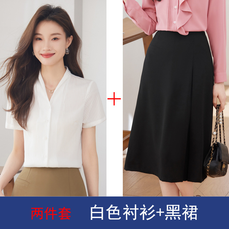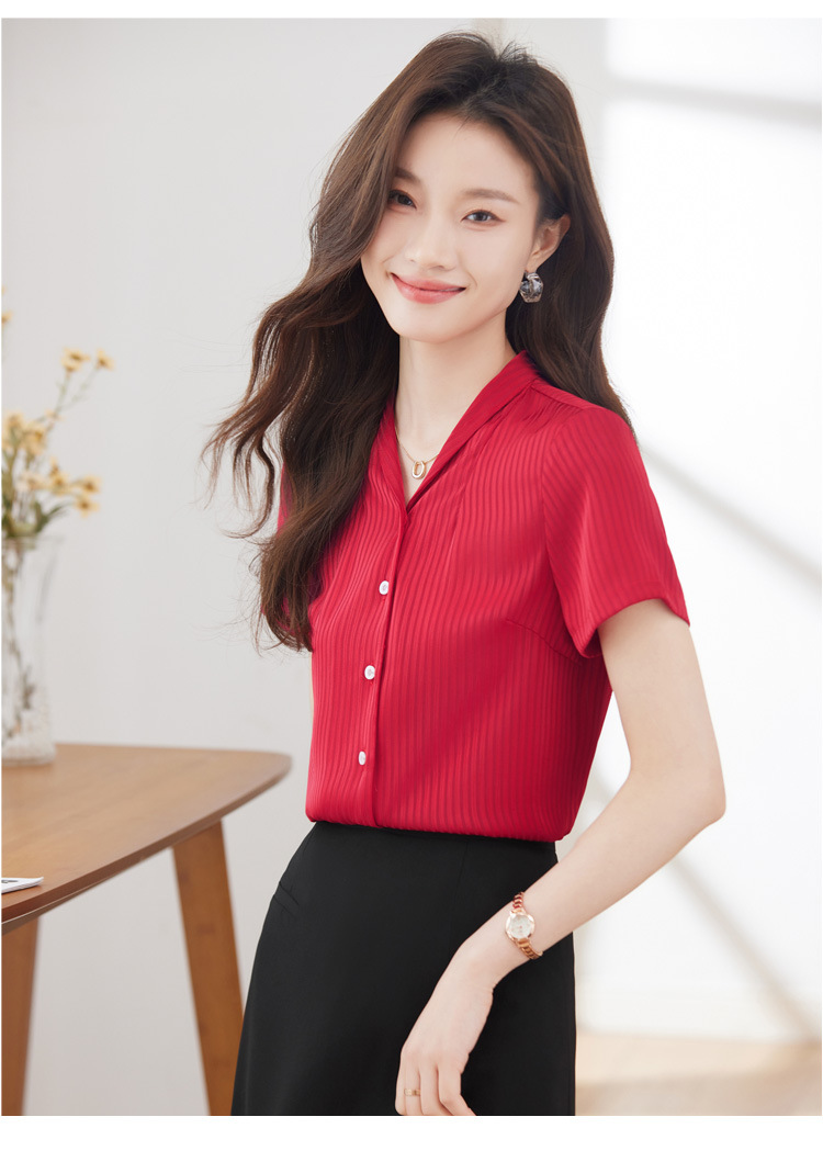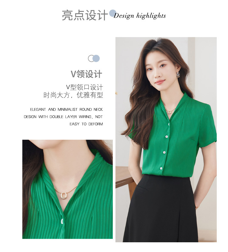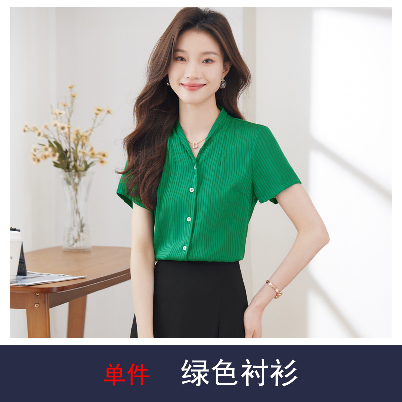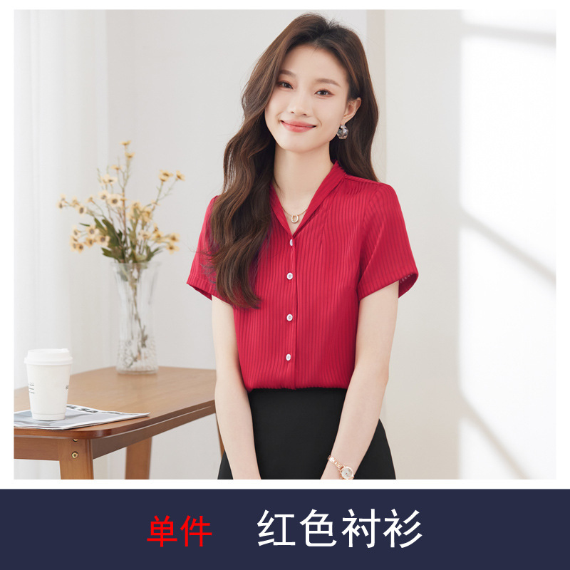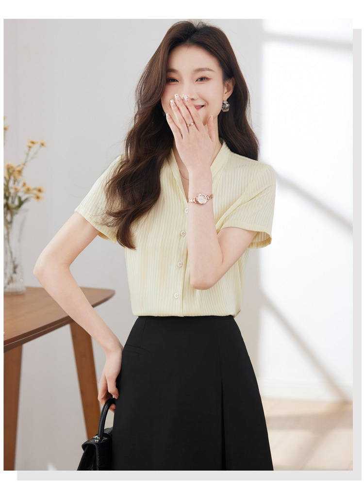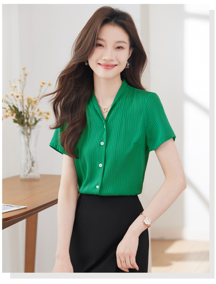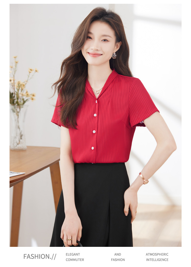 여름 2024 새로운 프랑스 스타일 우아한 셔츠 여성용 V 넥 슬림 핏 반팔 셔츠 우아한 OL 통근 탑 워크 의류스토어 가기