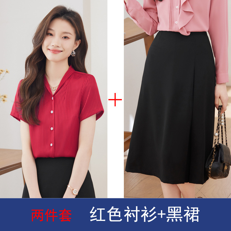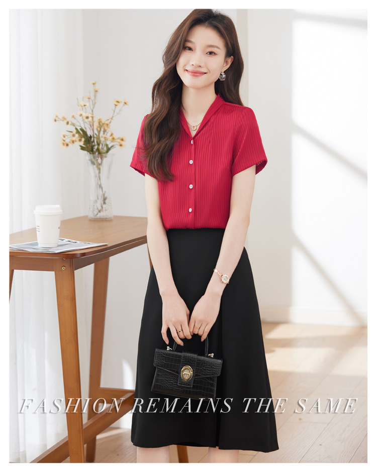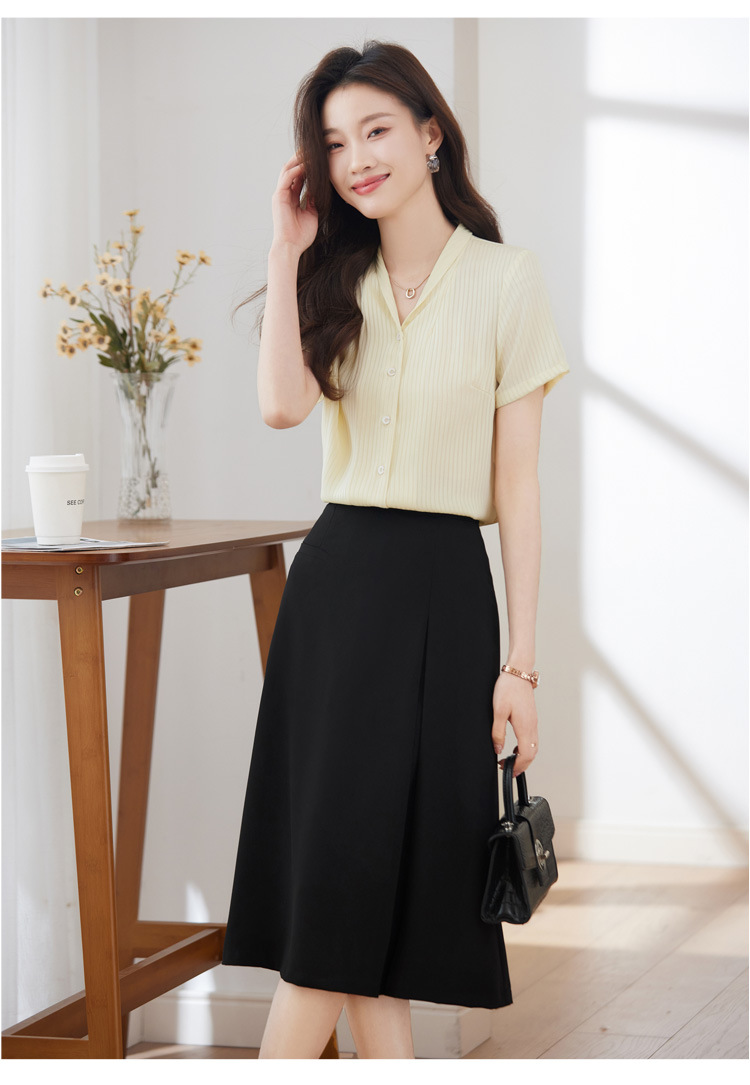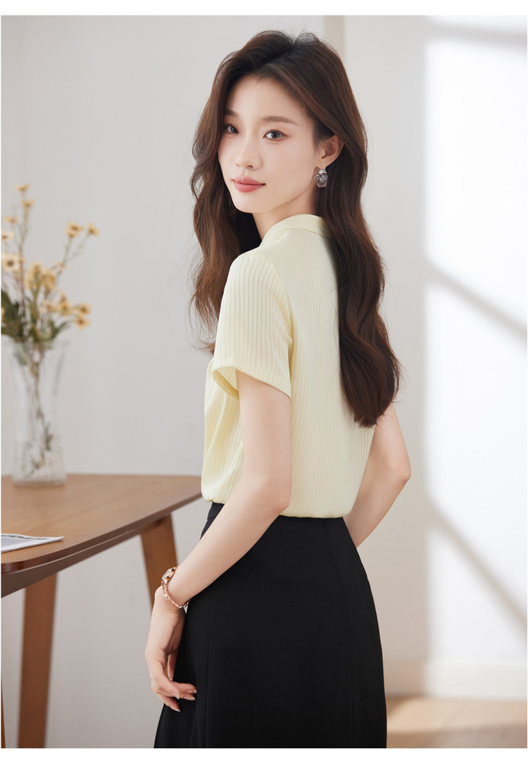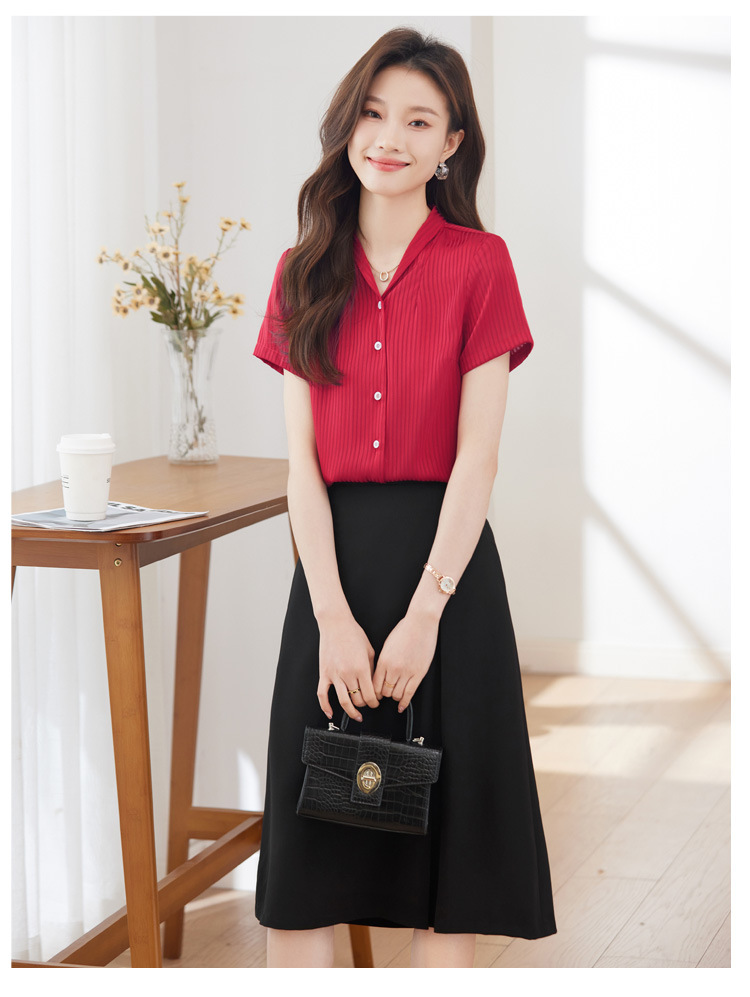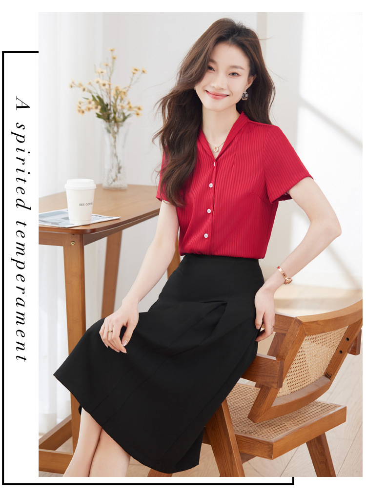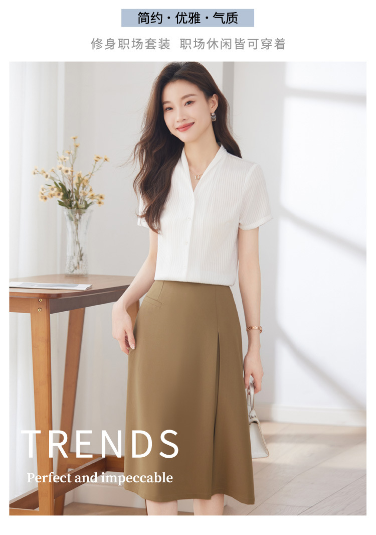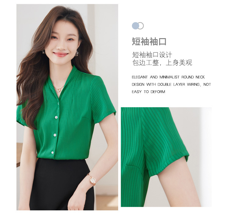 여름 2024 새로운 프랑스 스타일 우아한 셔츠 여성용 V 넥 슬림 핏 반팔 셔츠 우아한 OL 통근 탑 워크 의류스토어 가기
