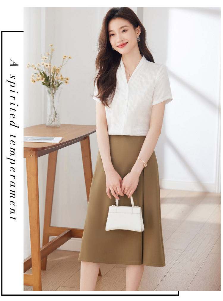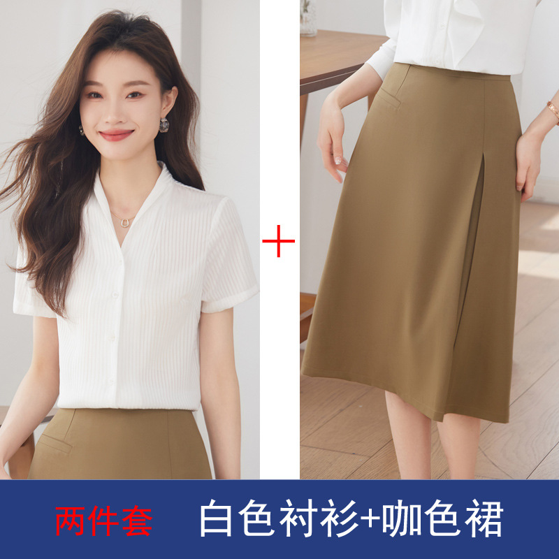 • 화이트 셔츠 + 3053 카레 컬러 스커트