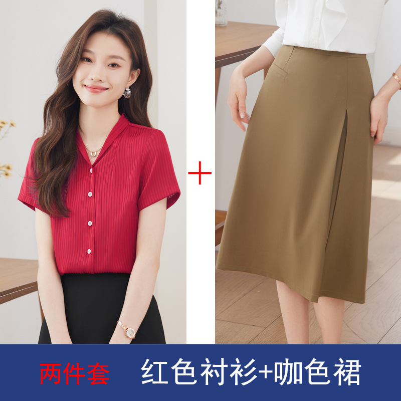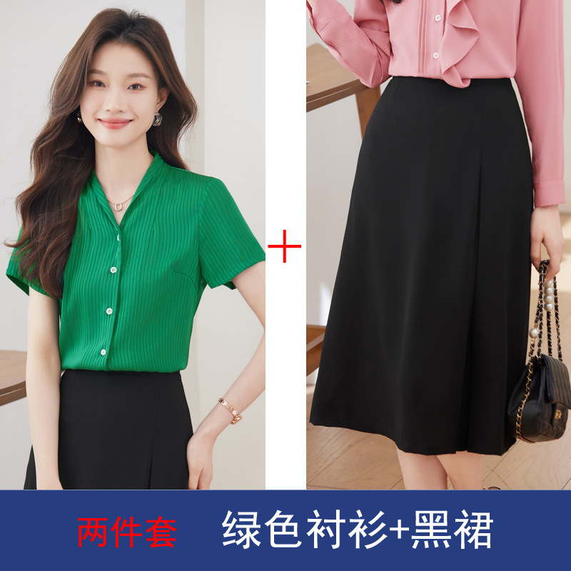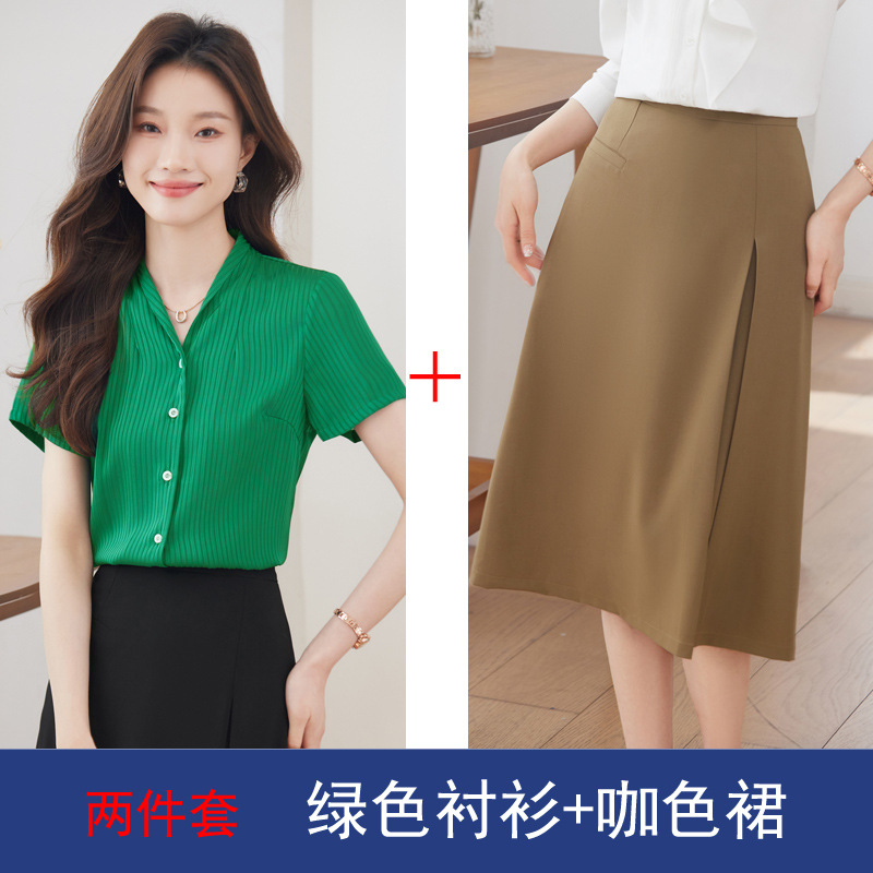 • 녹색 셔츠 + 3053 카레 컬러 스커트