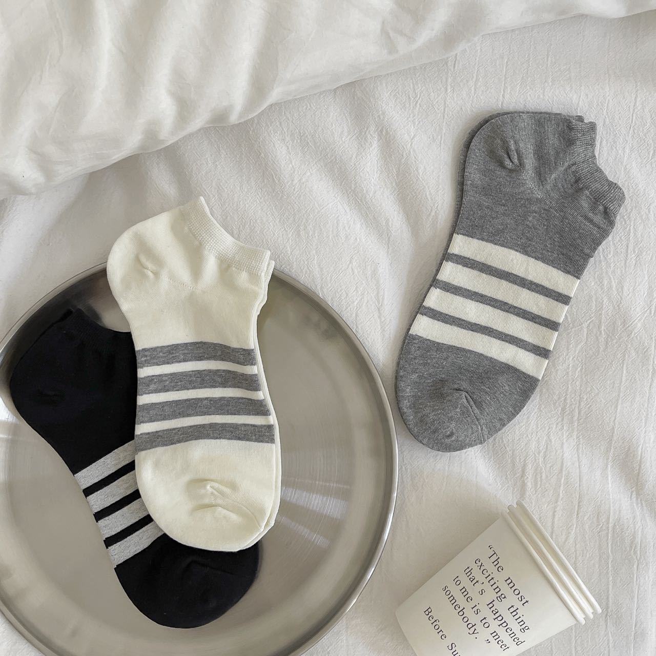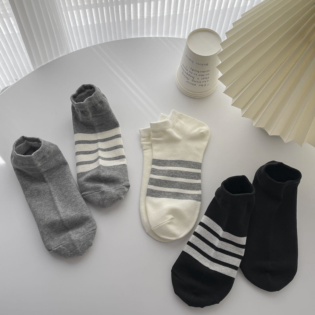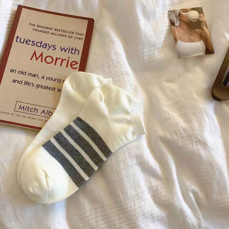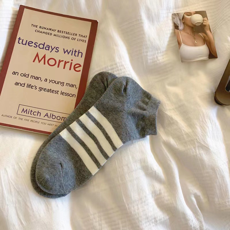 일본식 트렌디 한 브랜드 4 바 스트라이프 보트 양말 흑백 회색 AB 발 양말 남성과 여성 트렌디 한 로우 사이드 숄로우 입 짧은 양말스토어 가기