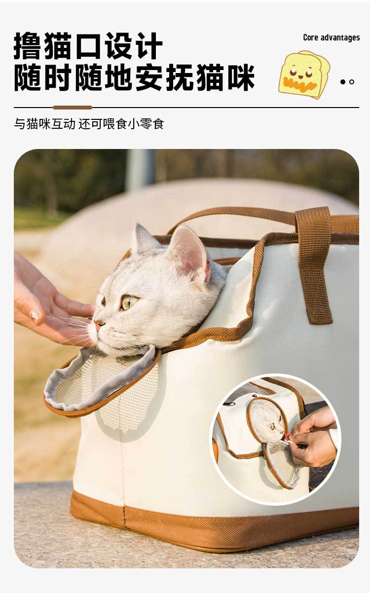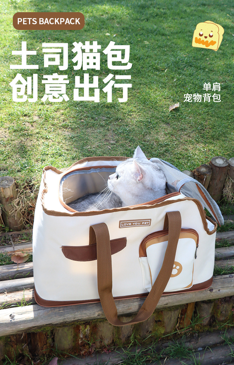 토스트 원숄더 고양이 가방, 휴대용 통기성 애완동물 가방, 스트레스 방지 고양이 외출 대용량 오픈탑 고양이 가방