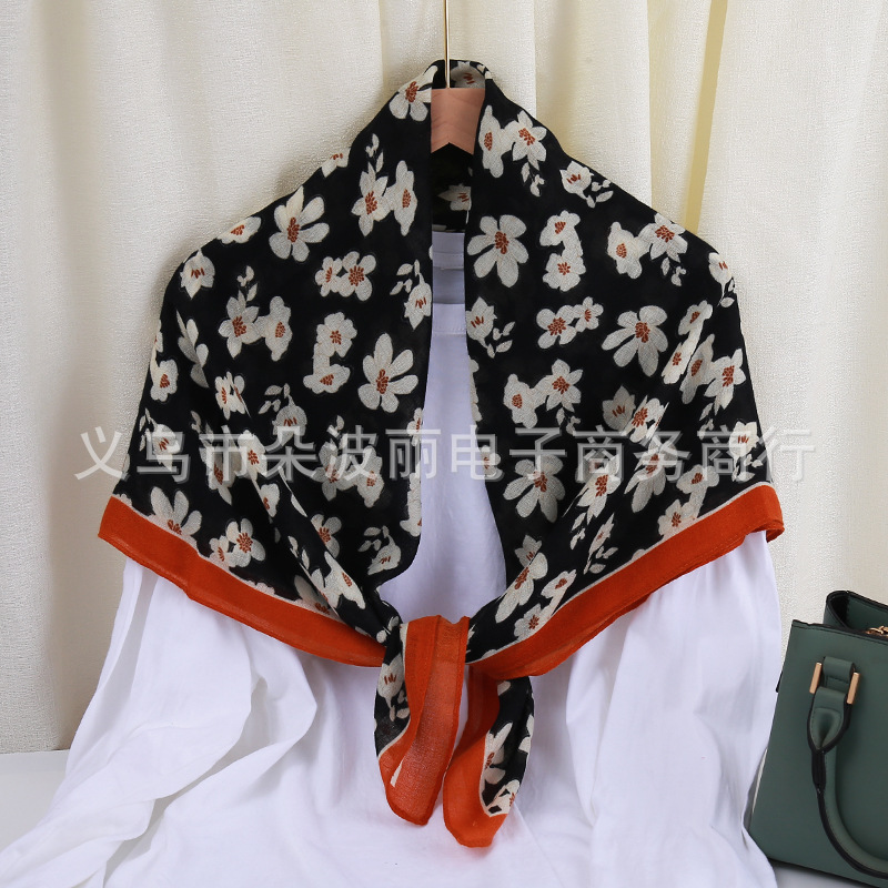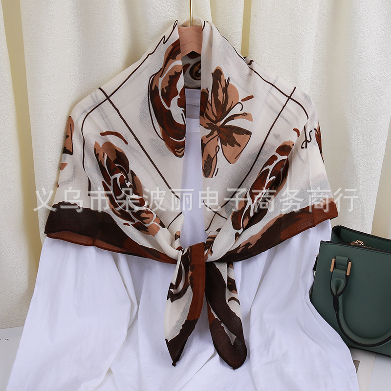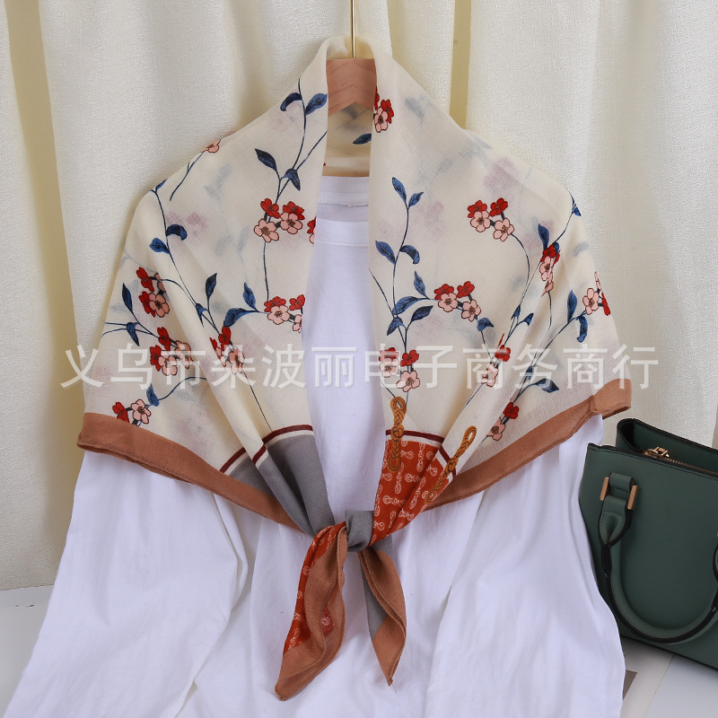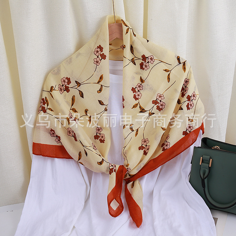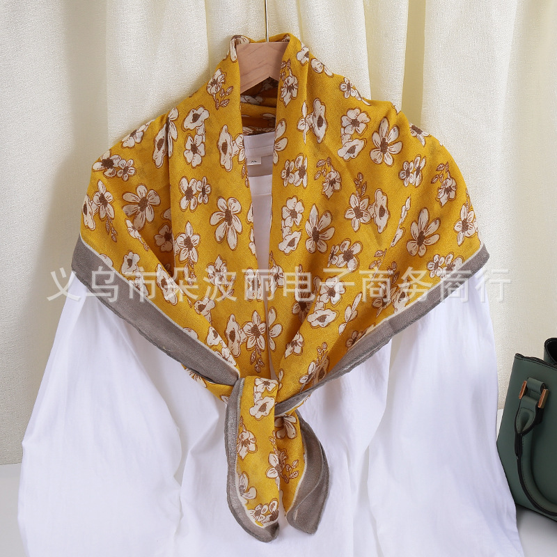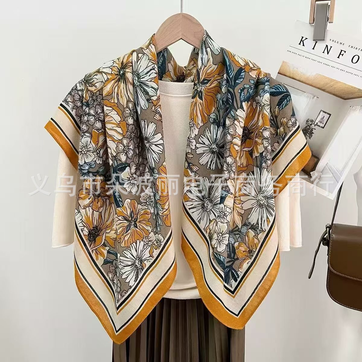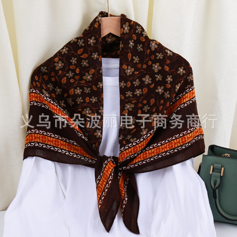 국경 간 봄과 가을 새로운 90CM 코튼 및 리넨 스퀘어 스카프 클래식 패션 스카프 여성 올 매치 인쇄 목도리 스카프 여성 배치