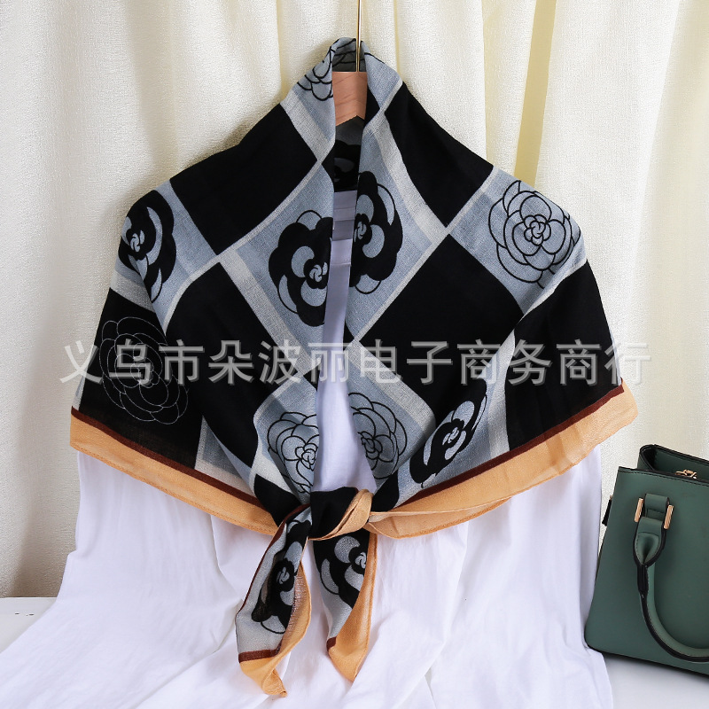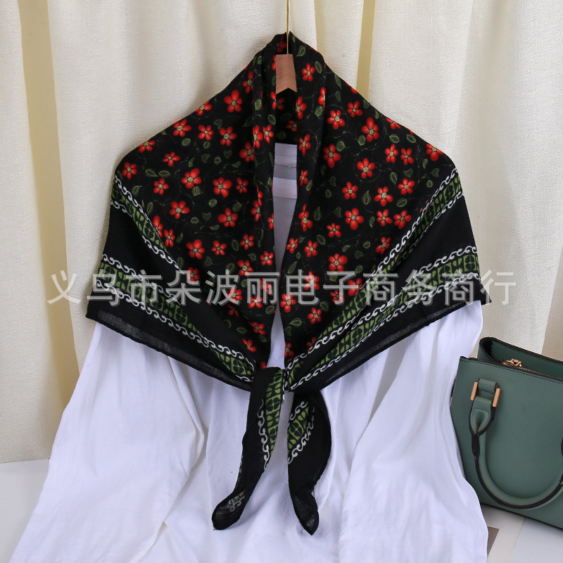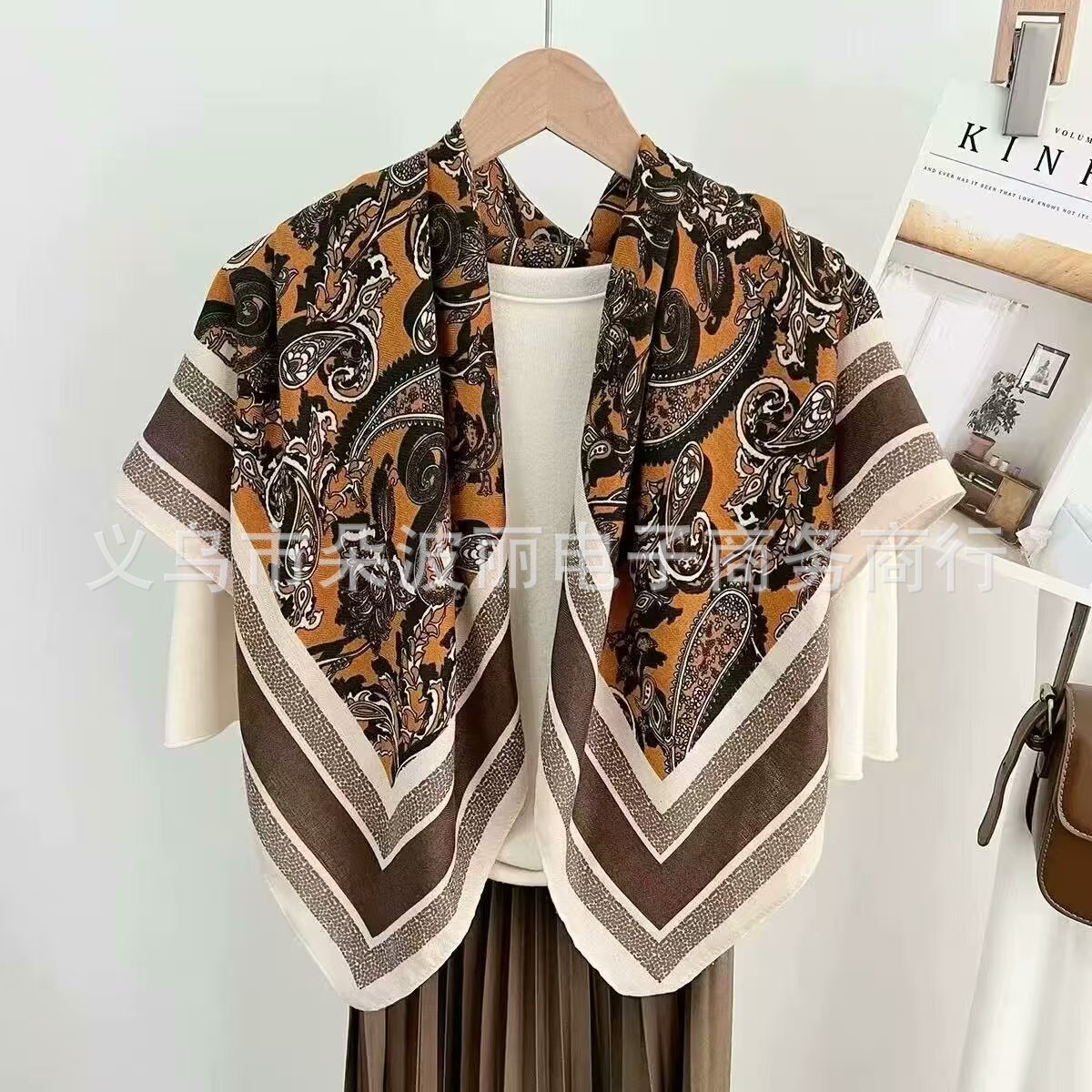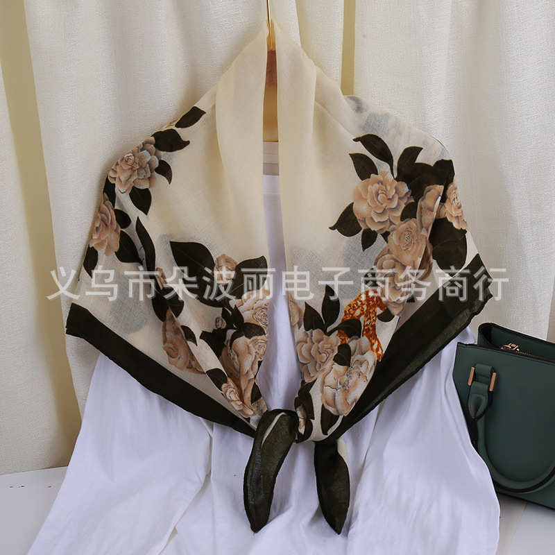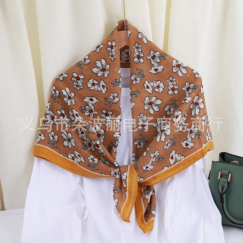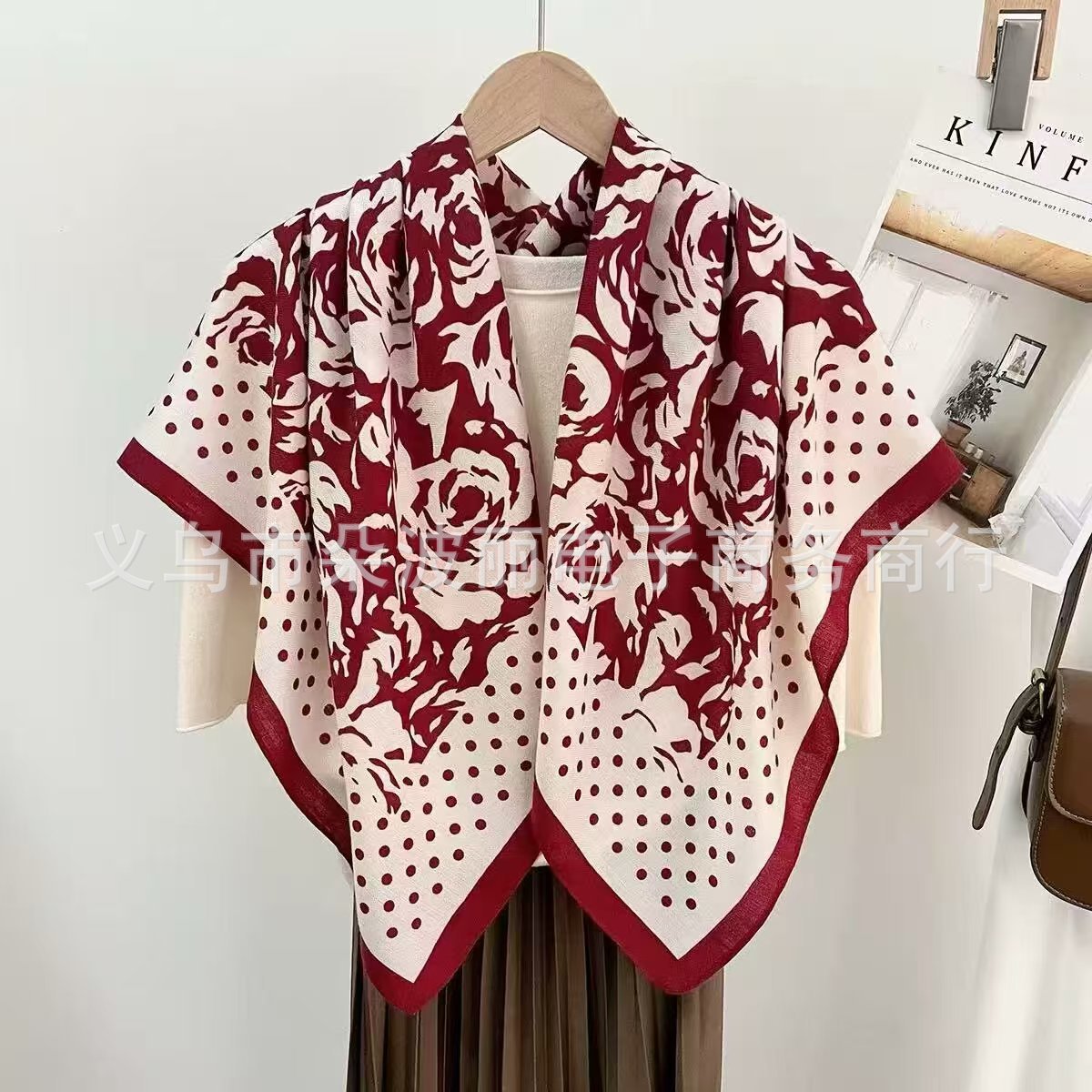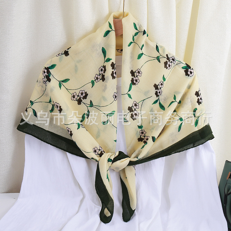국경 간 봄과 가을 새로운 90CM 코튼 및 리넨 스퀘어 스카프 클래식 패션 스카프 여성 올 매치 인쇄 목도리 스카프 여성 배치