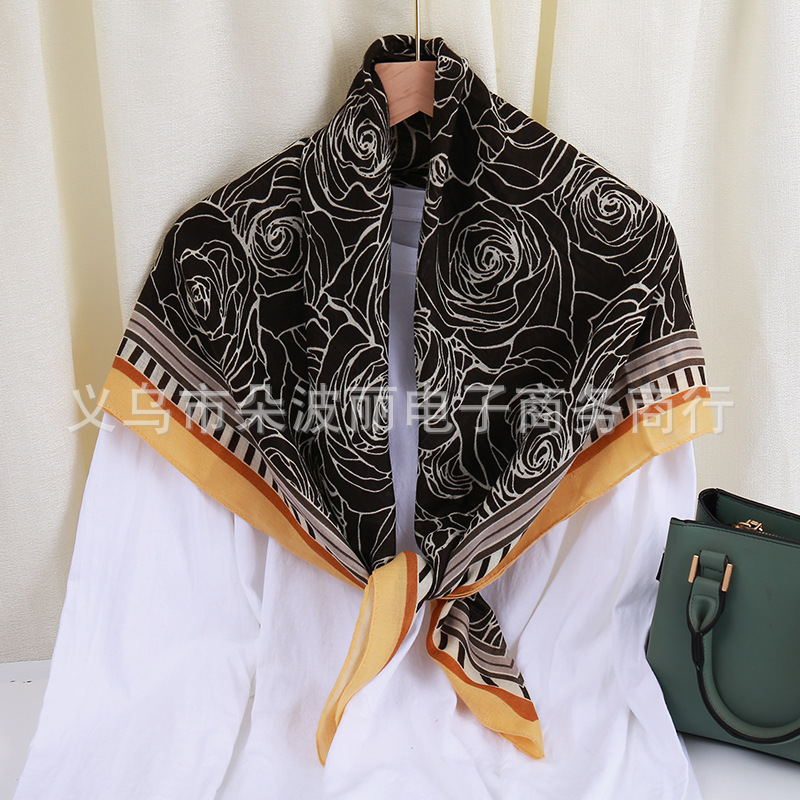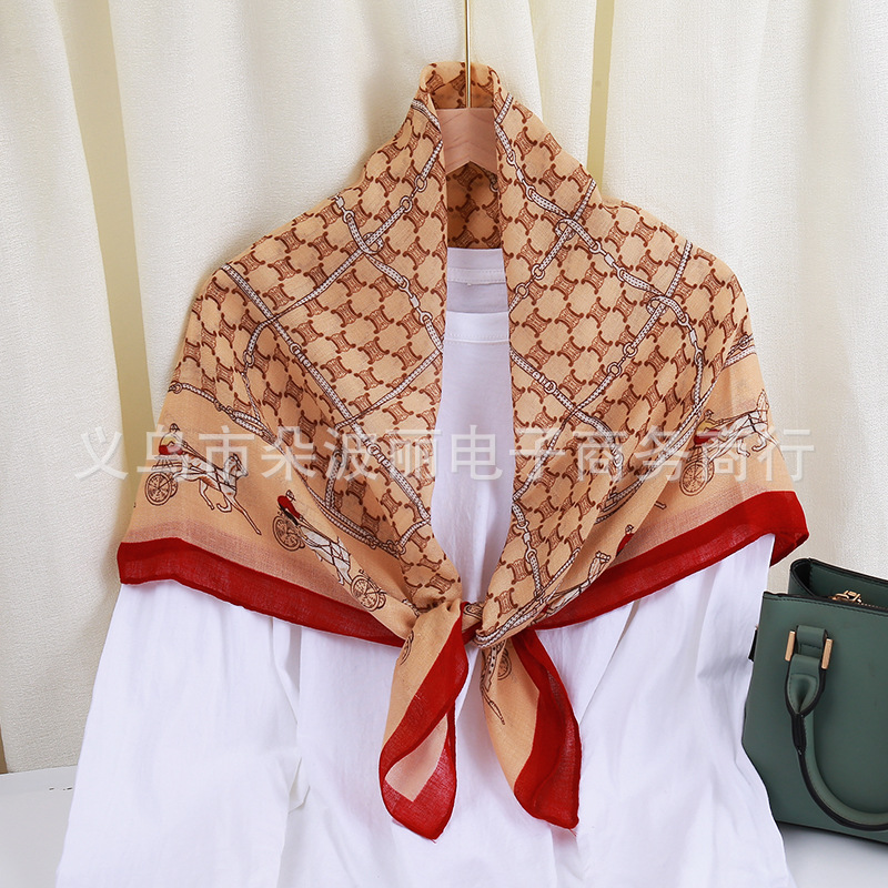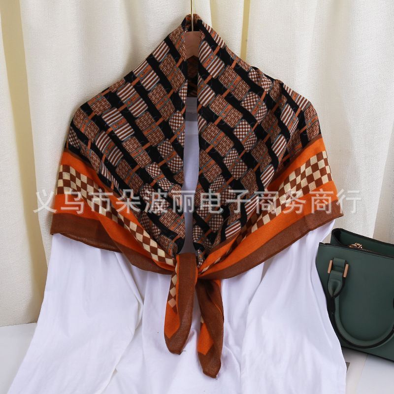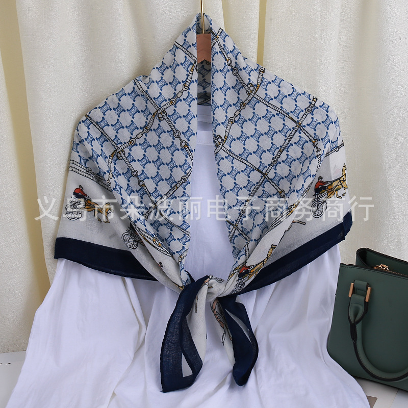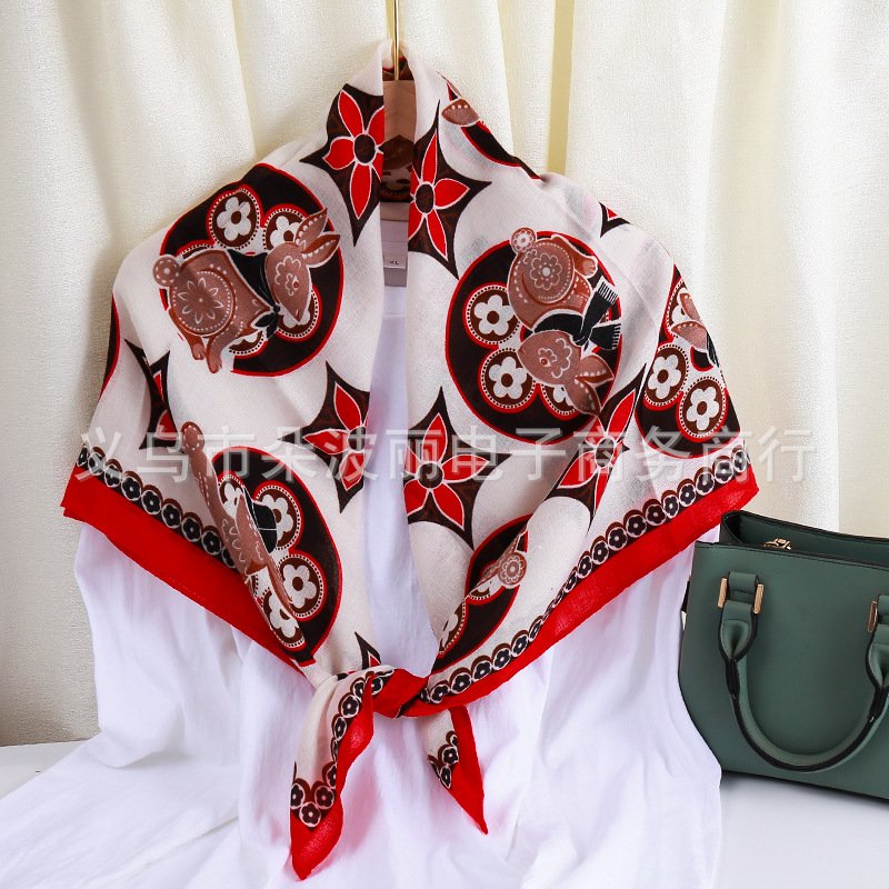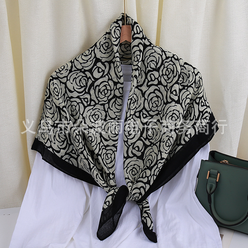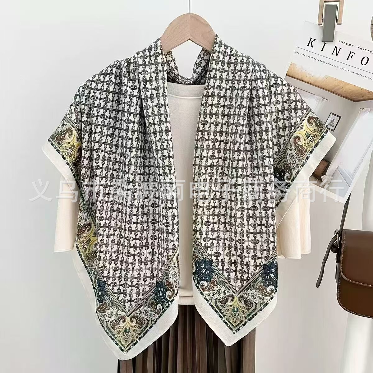 국경 간 봄과 가을 새로운 90CM 코튼 및 리넨 스퀘어 스카프 클래식 패션 스카프 여성 올 매치 인쇄 목도리 스카프 여성 배치