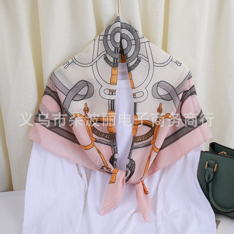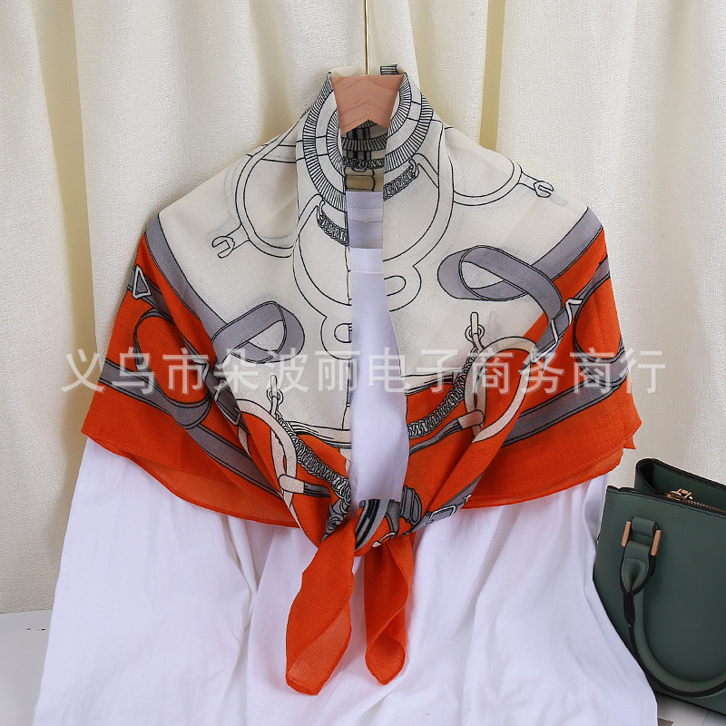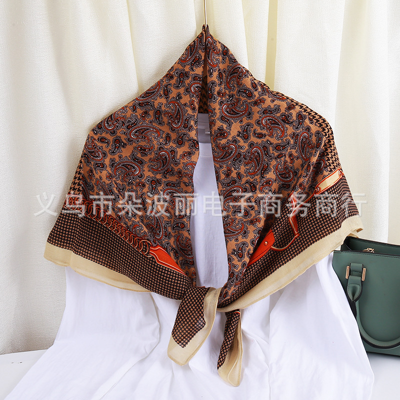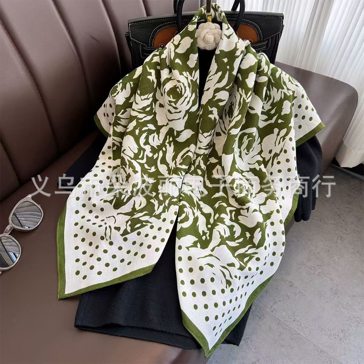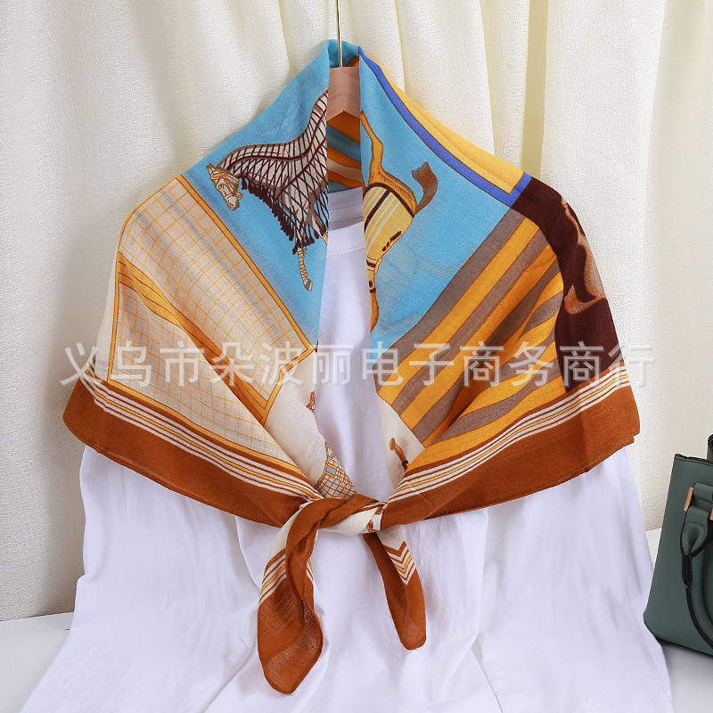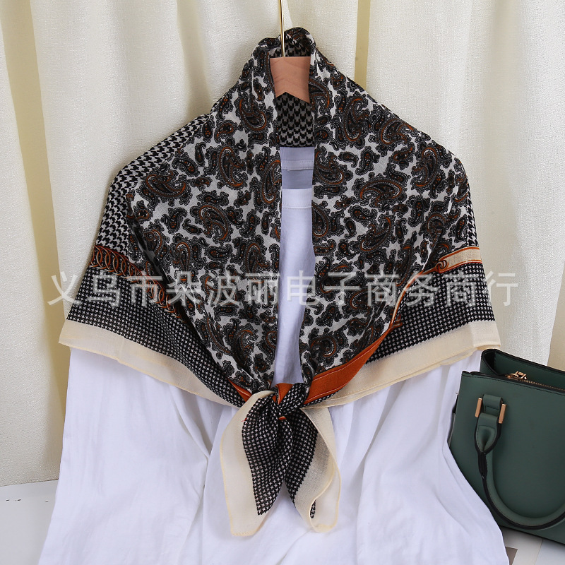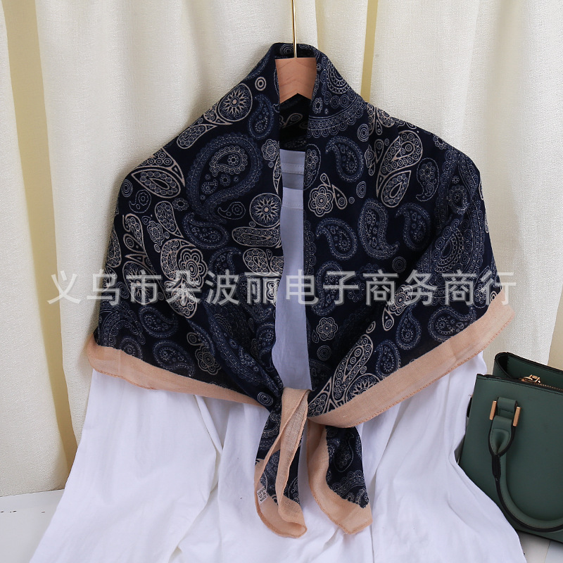 국경 간 봄과 가을 새로운 90CM 코튼 및 리넨 스퀘어 스카프 클래식 패션 스카프 여성 올 매치 인쇄 목도리 스카프 여성 배치