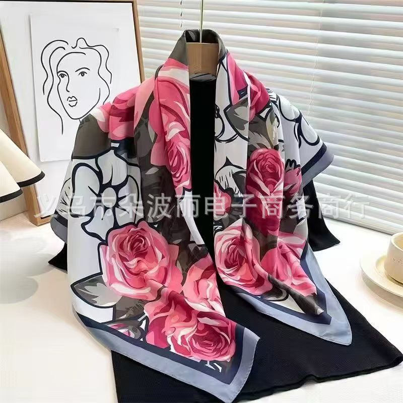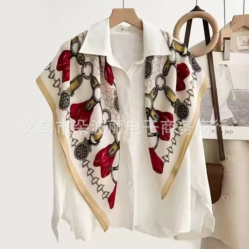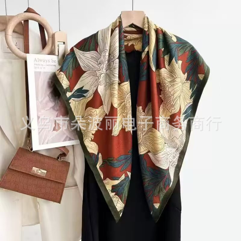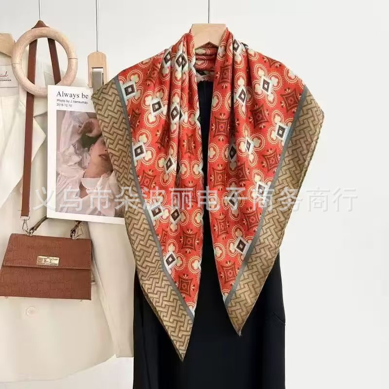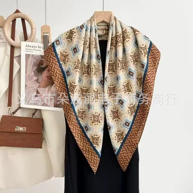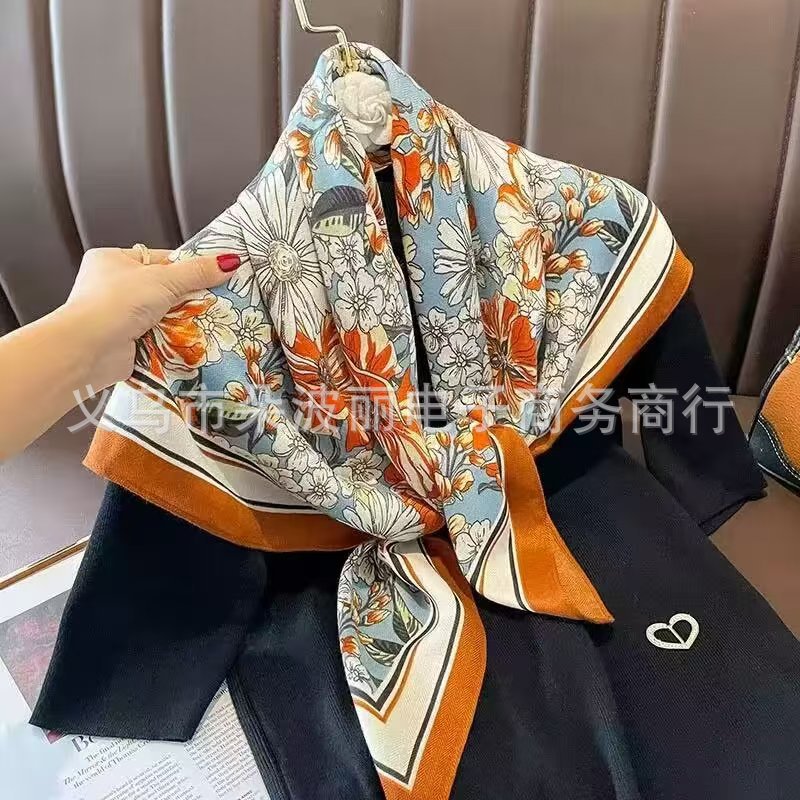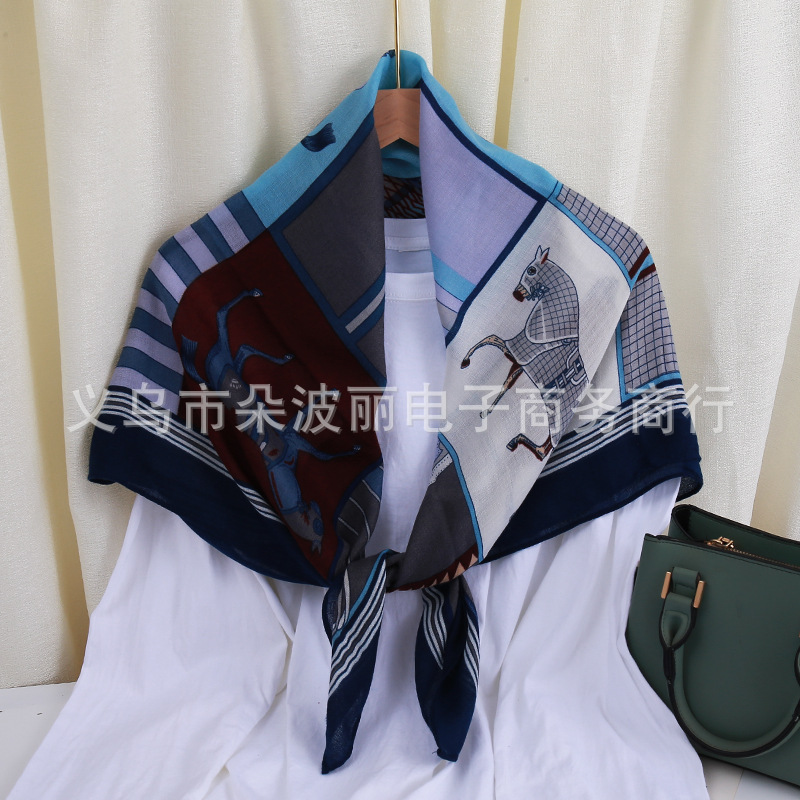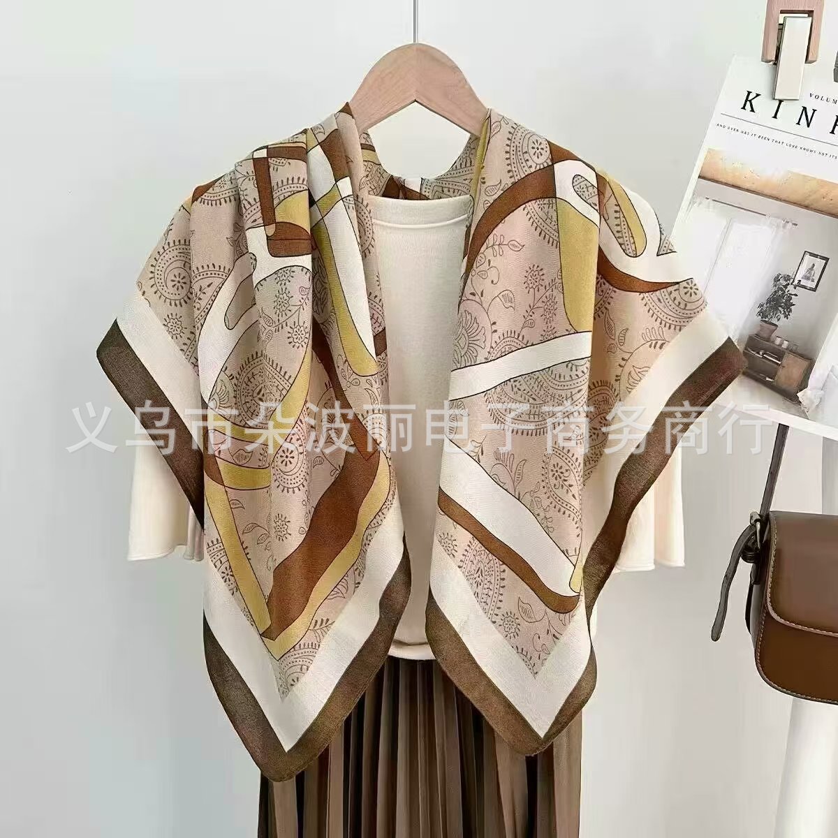 국경 간 봄과 가을 새로운 90CM 코튼 및 리넨 스퀘어 스카프 클래식 패션 스카프 여성 올 매치 인쇄 목도리 스카프 여성 배치