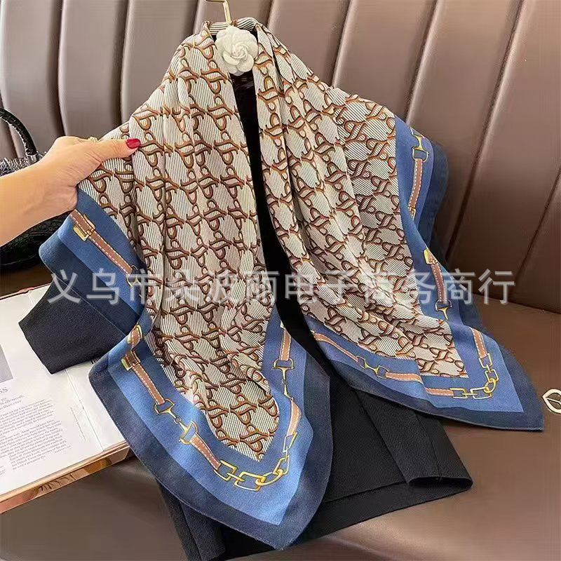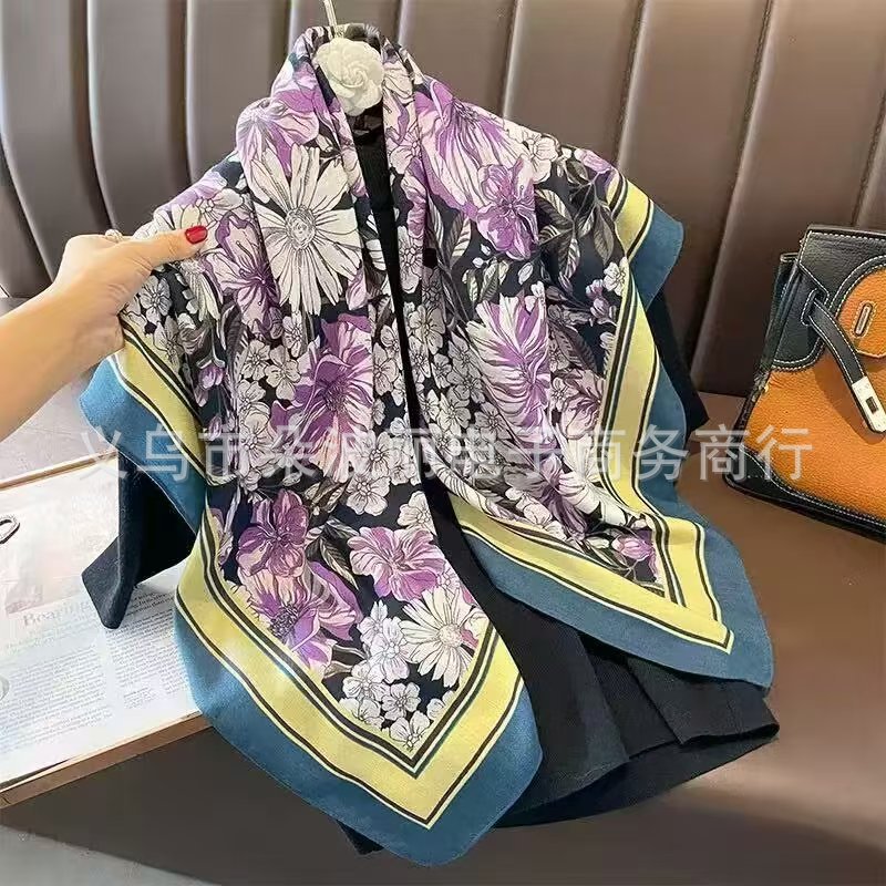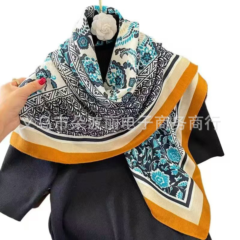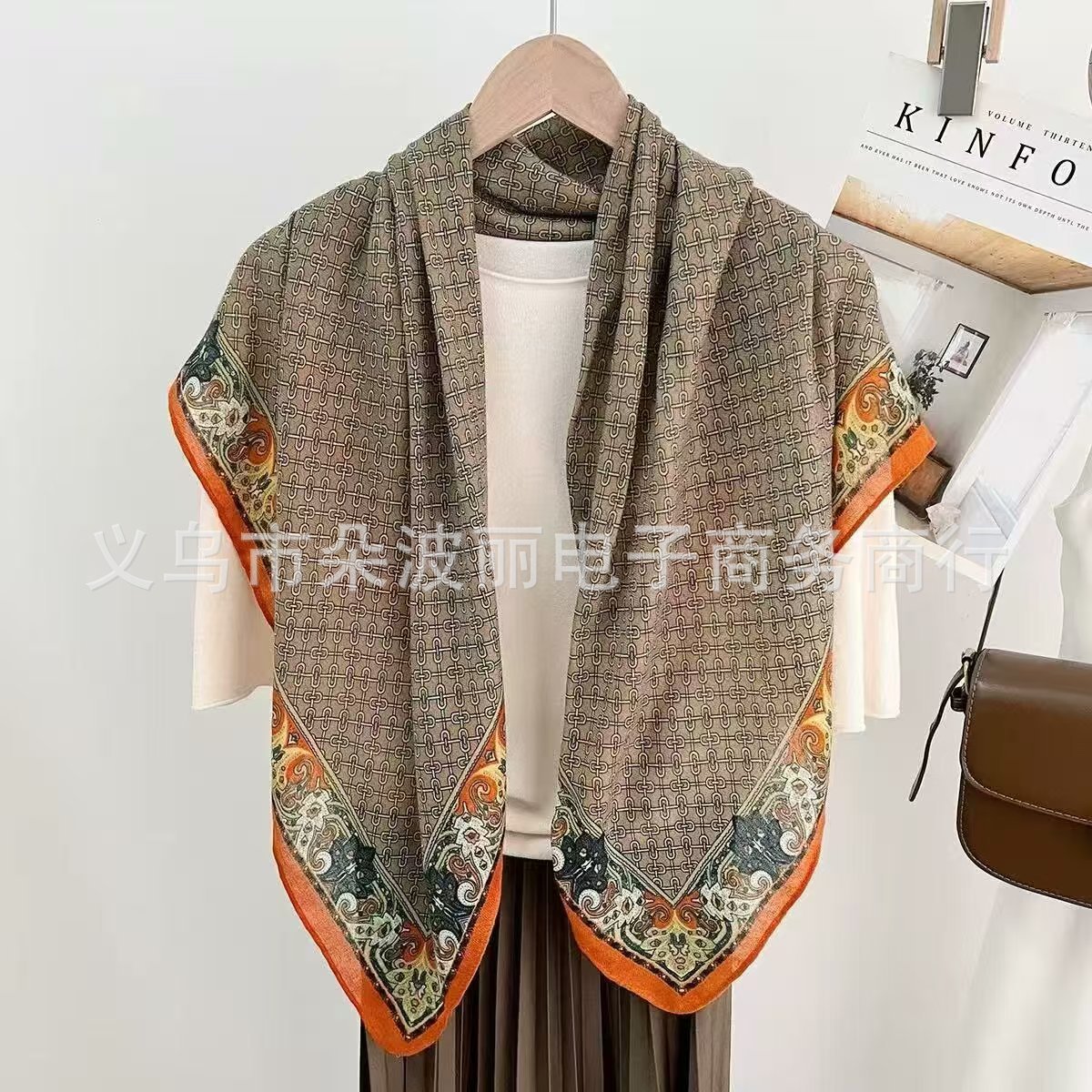국경 간 봄과 가을 새로운 90CM 코튼 및 리넨 스퀘어 스카프 클래식 패션 스카프 여성 올 매치 인쇄 목도리 스카프 여성 배치스토어 가기