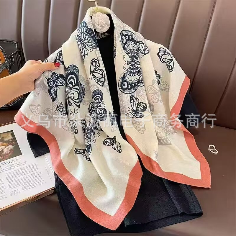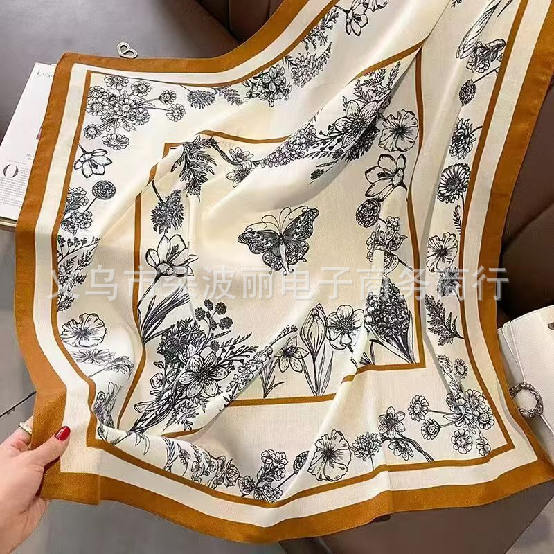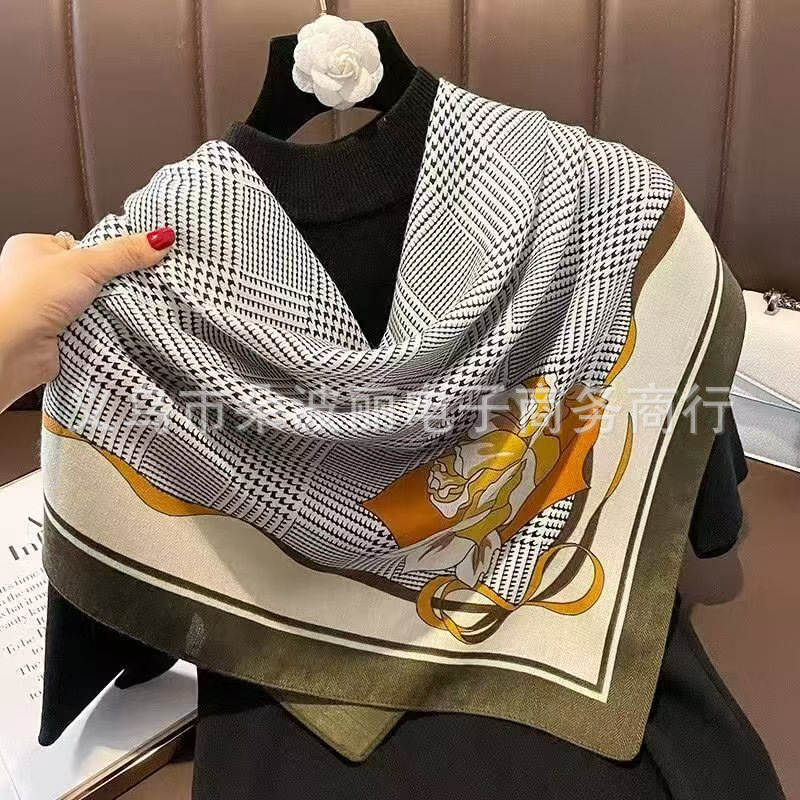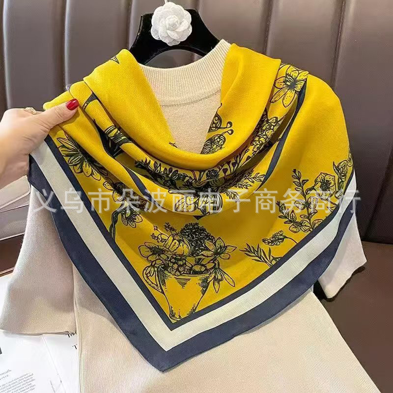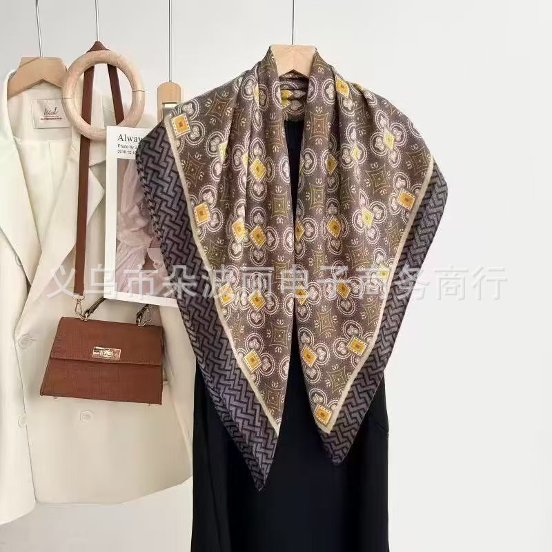 국경 간 봄과 가을 새로운 90CM 코튼 및 리넨 스퀘어 스카프 클래식 패션 스카프 여성 올 매치 인쇄 목도리 스카프 여성 배치스토어 가기