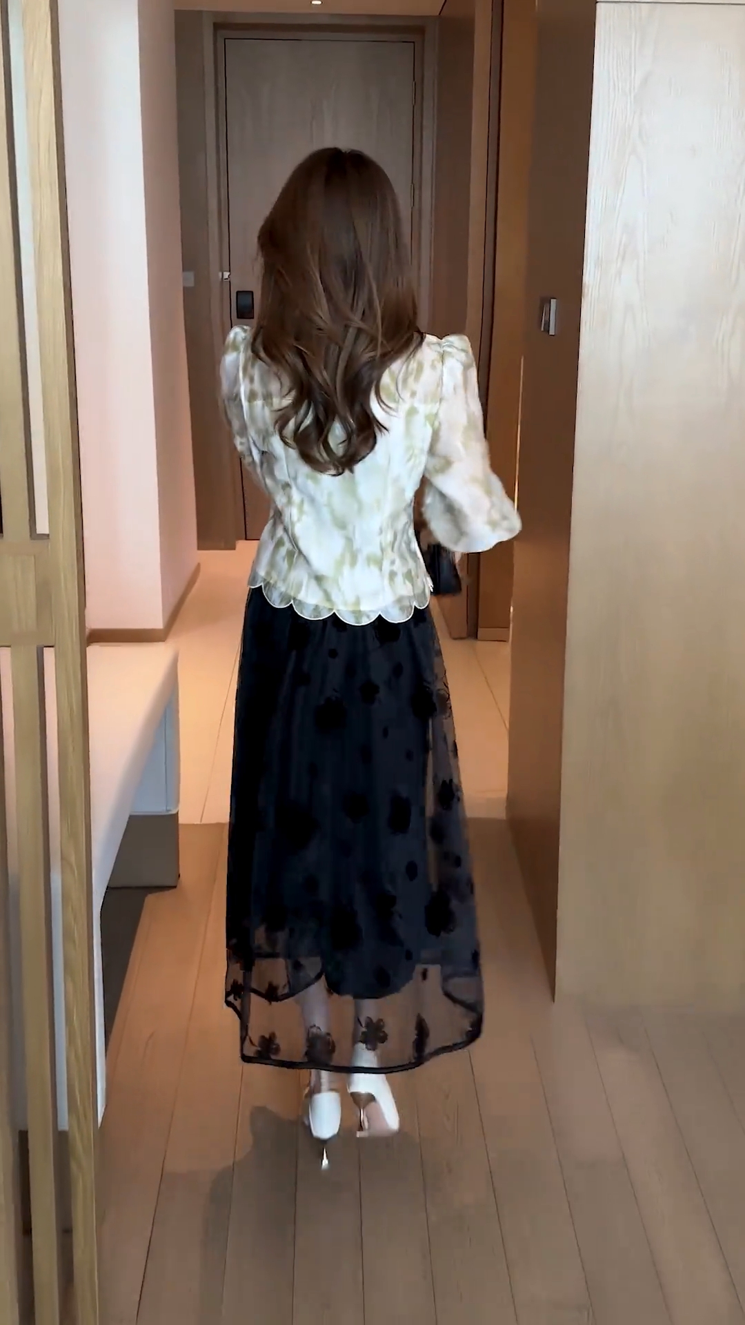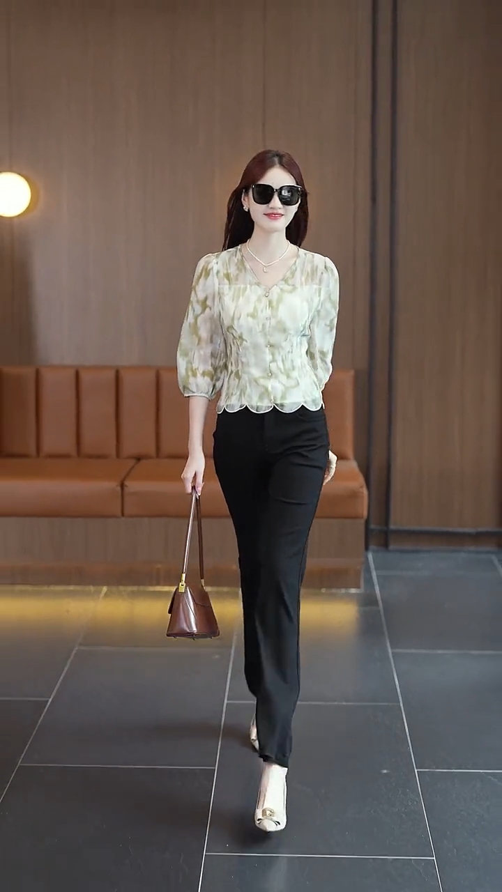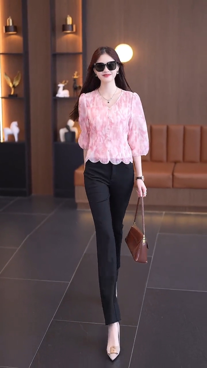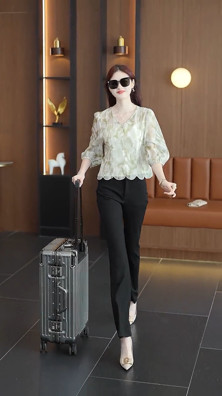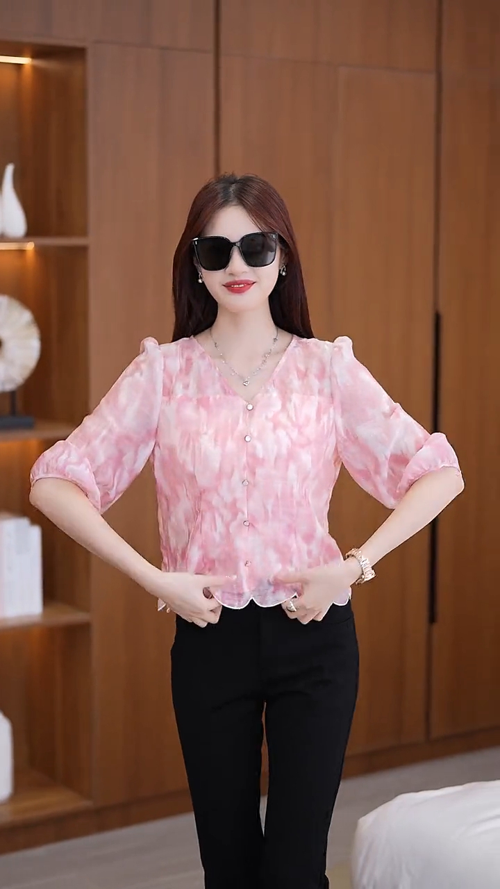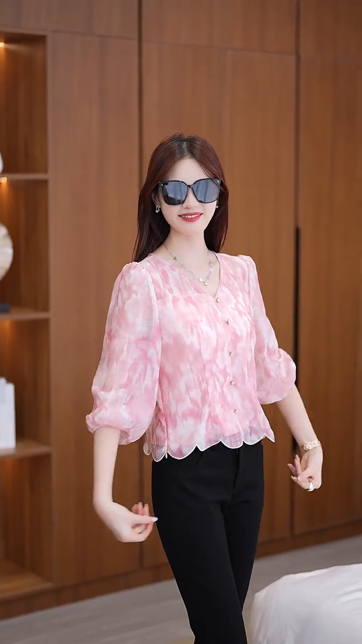 세련되고 스타일리쉬한 플로럴 시폰 셔츠 여성 7부 소매 브랜드 블라우스 2026 봄 신상 배를 가려주는 슬리밍 탑스토어 가기