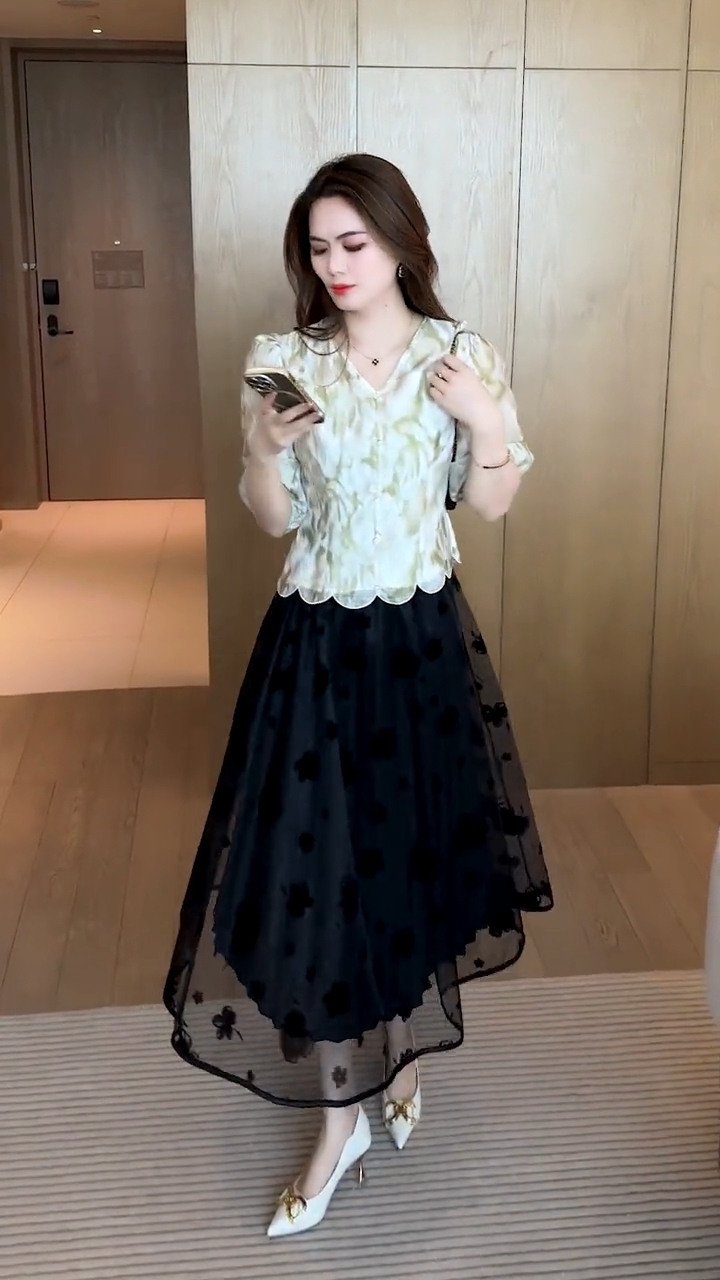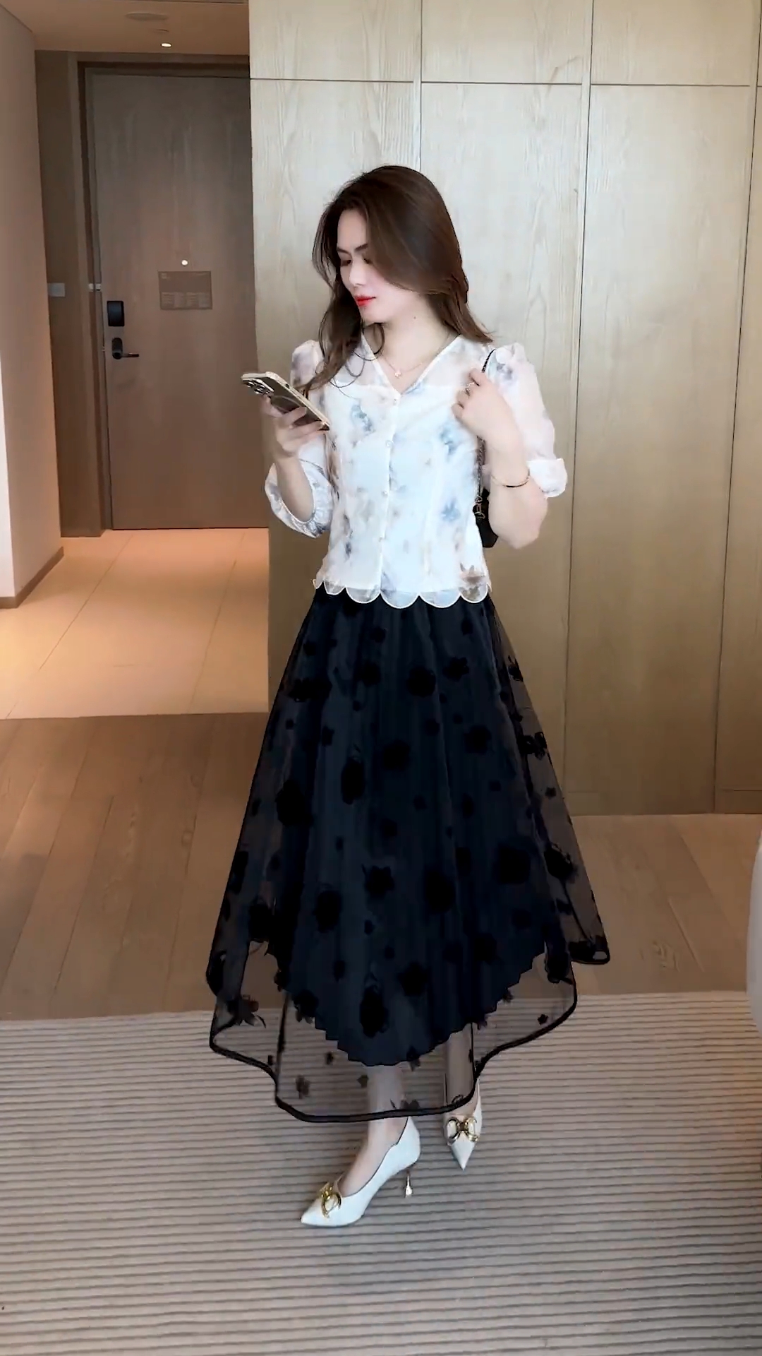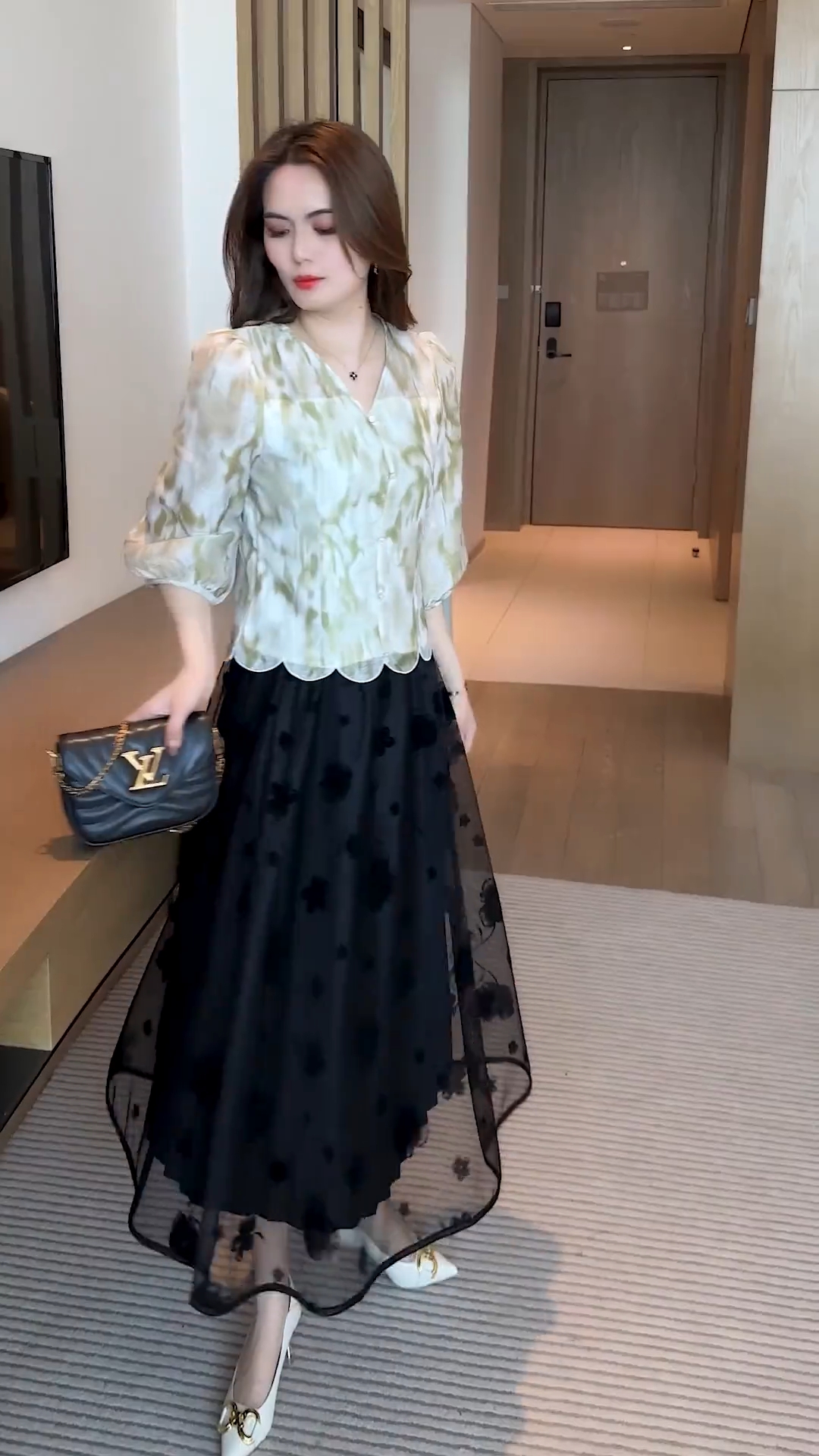 세련되고 스타일리쉬한 플로럴 시폰 셔츠 여성 7부 소매 브랜드 블라우스 2026 봄 신상 배를 가려주는 슬리밍 탑
