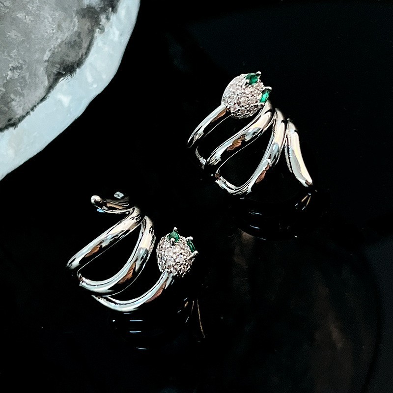 뱀 모양의 와인딩 다이아몬드가 박힌 불규칙한 귀걸이 성격 틈새 콜드 스타일 금속 귀걸이 여성 디자인 감각