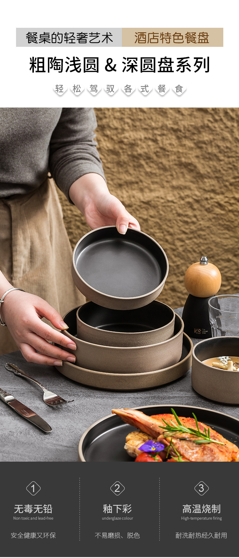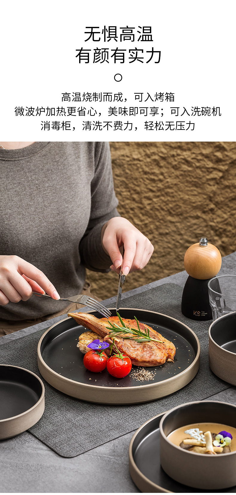 고가의 제조 업체 석기 일본식 스테이크 플레이트 복고풍 플레이트 가정용 접시 평면 디스크 국경 지점스토어 가기